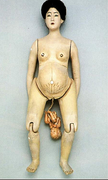 18、19世纪的日本,盛行一种杂耍,名为misemono(意为职业放屁人),很受当时一些上层人士的欢迎。这些杂耍旨在唤起人们的怀疑精神,并满足他们对于生活中某些事的好奇心。其中一种很流行的物品就是孕妇娃娃。虽然人们普遍认为这些玩具娃娃是用来教育女子如何生孩子的,但还是有证据证明它们同时也是用来娱乐的。