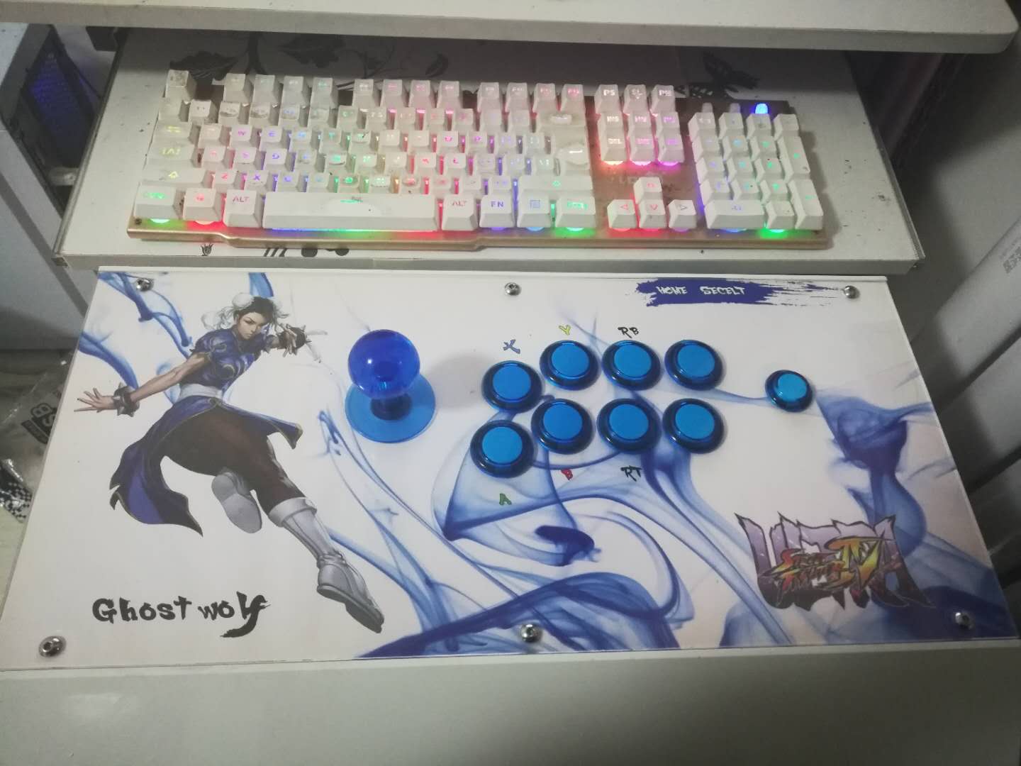 着重批评的 mixbox,护手与杆面不平,自己还得多做一个吼一毫米亚克力,这样就只能用螺旋按键不能用卡扣的,而且护手角太陡,搁手。