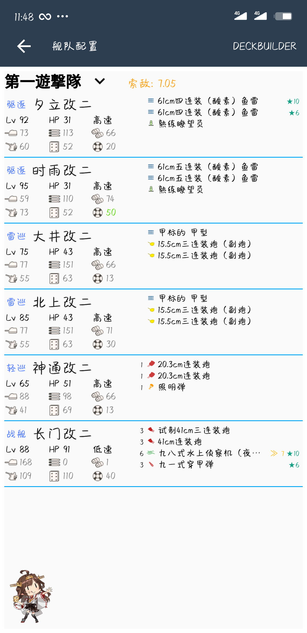 首先队排换一下,长门旗舰,二三四神通北大。然后poi换二连,或者换成亲王打ci。高运ci手带男厕没用,换成鱼雷或者照明弹。我也是半个月前打通5-3的,应该是一百级,配置是陆奥改二,aww,北大,时雨亲王