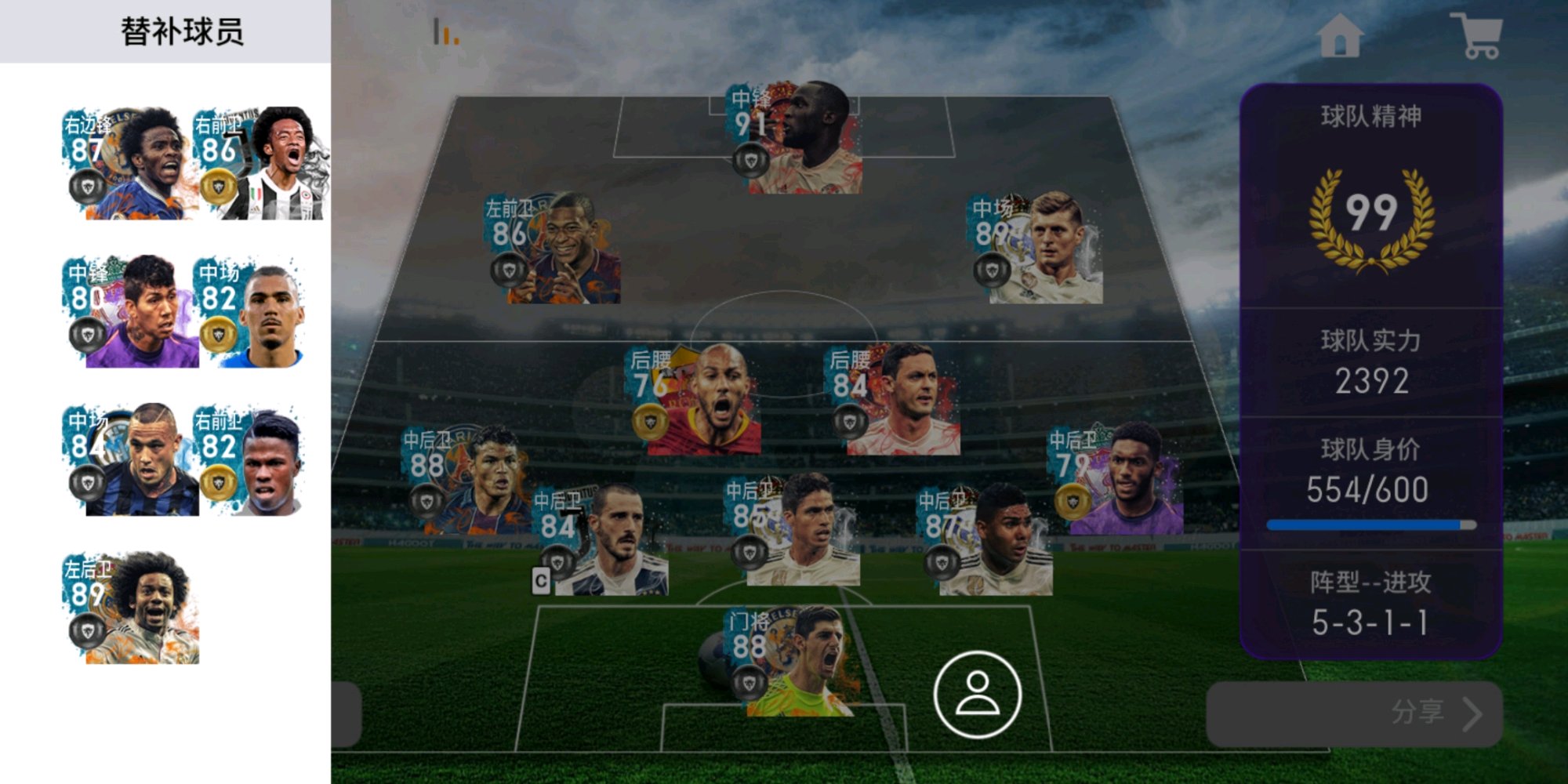 姆巴佩和卢卡库谁打主力中锋,很纠结,阵容如图,萌新刚玩