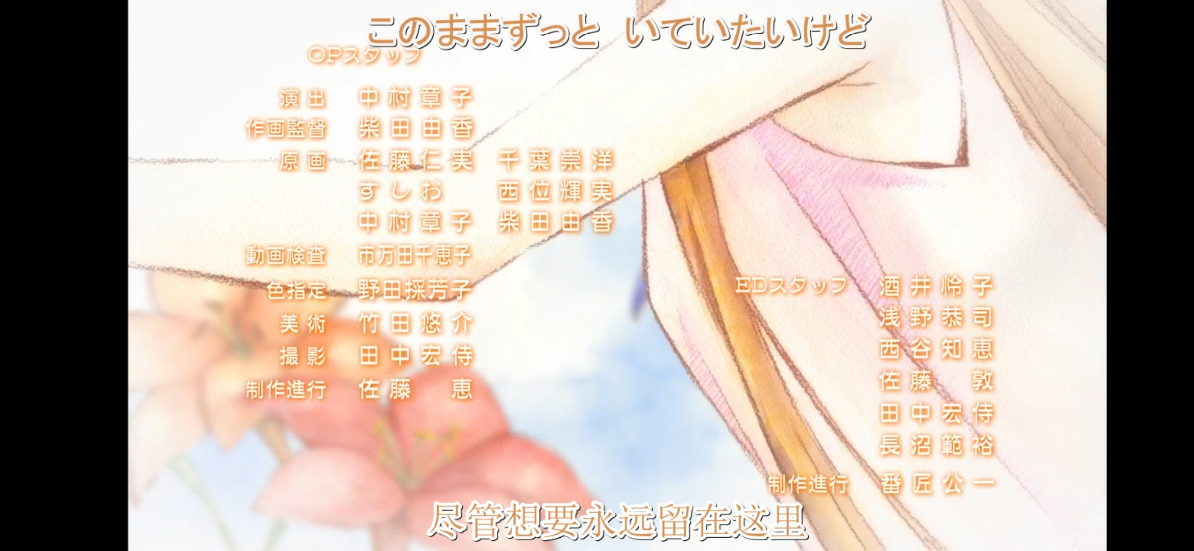 发现前几话的片尾曲与后面的有所不同,但是歌词似乎并没有区别(楼主不会日语)想要万能的吧友求证一下。说真这个片尾曲埋了很多伏笔,比如以后的分开,不只是留在家乡,去上大学各奔前程。以及主角的心境。
