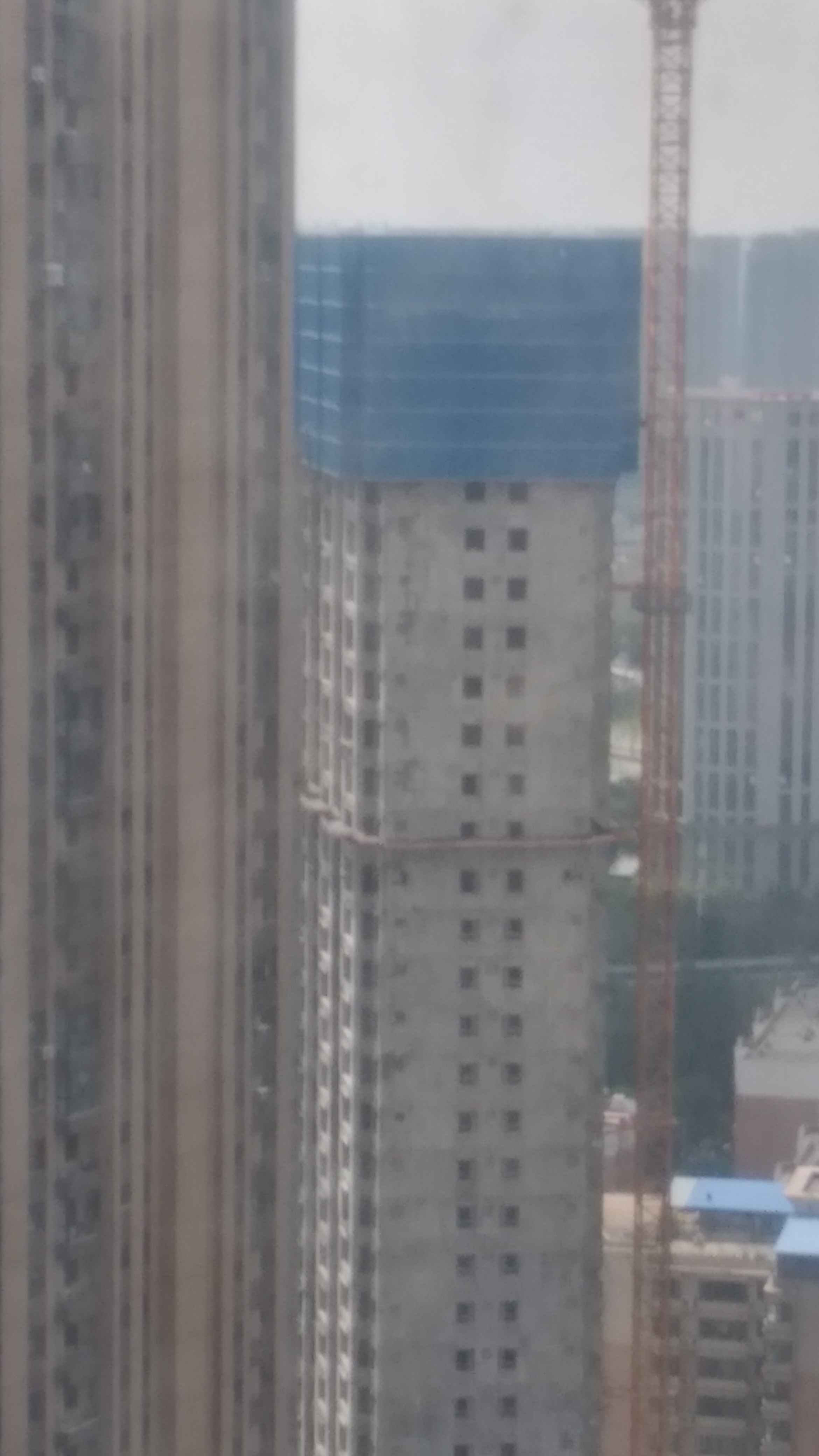 六月底回沈阳时,世茂最后一栋在建住宅楼——9号楼,中部防护网以上与爬模之间露出三层窗户,现在是8层——基本上一周一层。