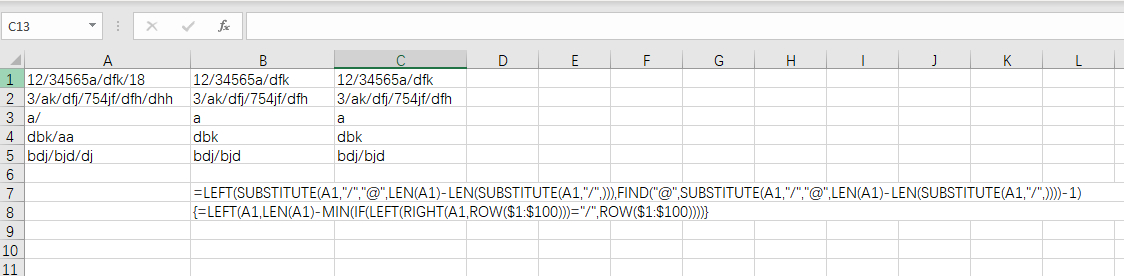 一个单元格内包含/的数量不一,有1个2个3个4个等等,我现在想提取最后一个/前面的数据,也就是删除最后一个/后面的内容,大佬帮帮忙