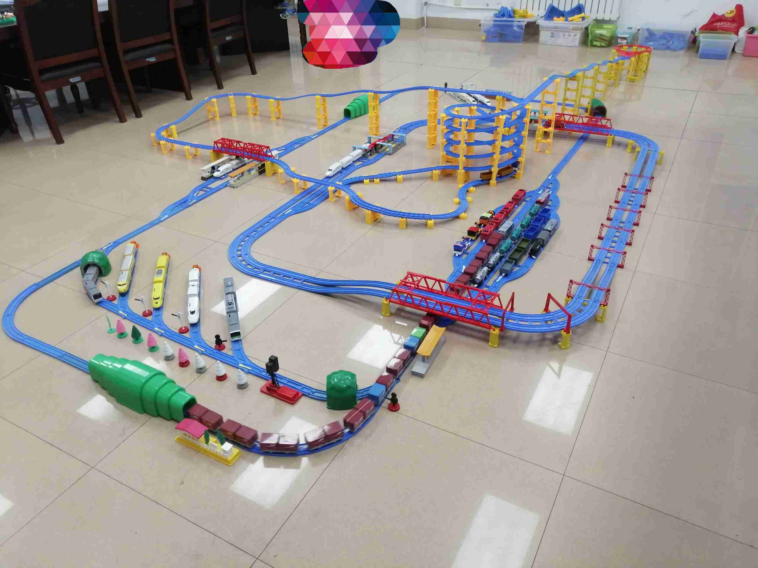 唉,一言难尽啊。。。 以后坚持小面积多车组运转。提前做个设计图再搭建。要不效率太低。 摆了几个小时,玩了不到俩小时。收拾又用了俩小时。。。