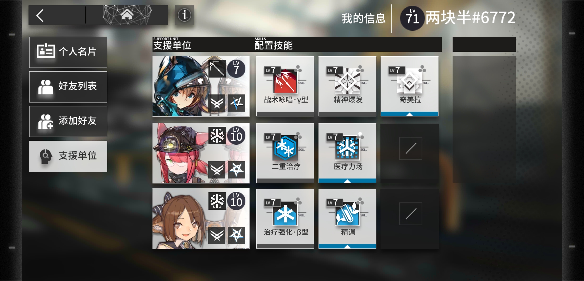 想刷出来一个好的银灰真的很难,有很多好友的银灰技能七级都没有,信赖也不满