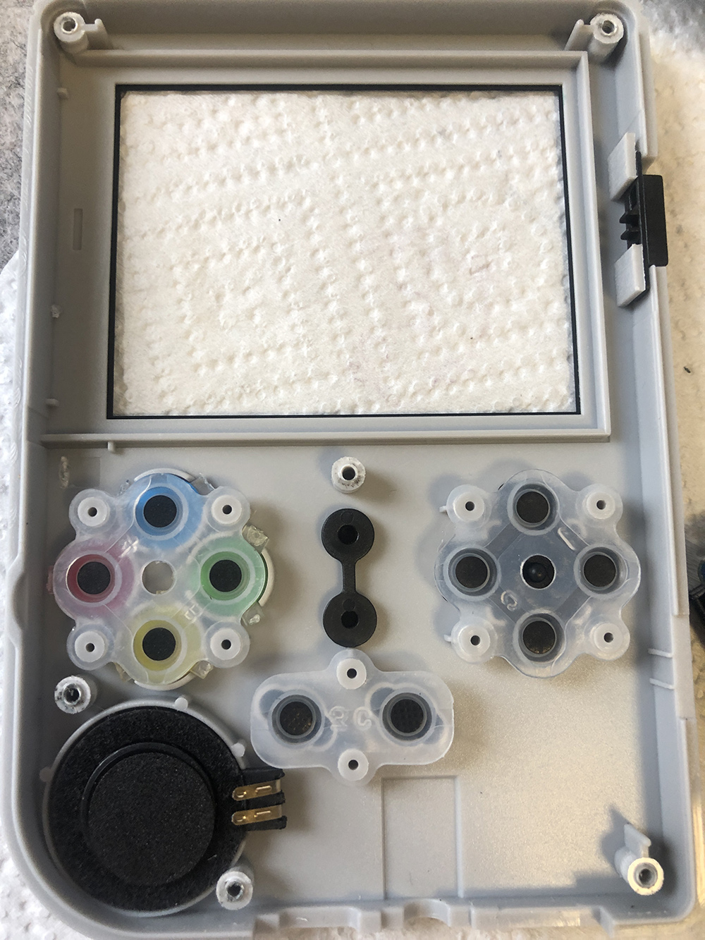 组装后盖的时候要注意L,R键位的位置别卡主 边组装边试着按压 没问题再上螺丝