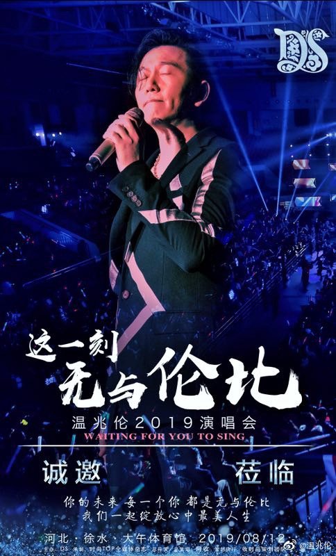感谢大家的支持,8 月 12 日 温兆伦 《无与伦比》全国巡演,河北站,门票已经全场爆满,再次感谢,我会在演唱会现场恭候各位,我们不见不散!