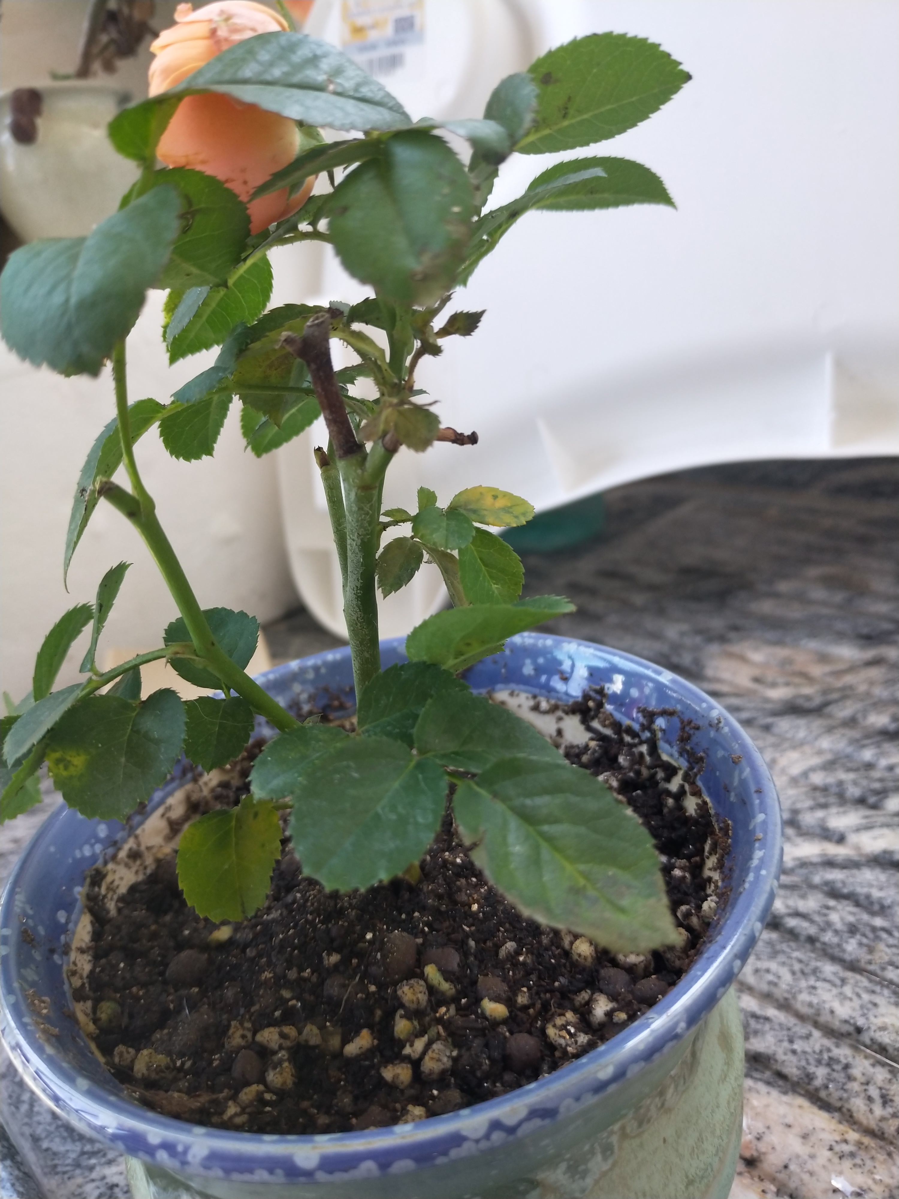 第二次尝试入坑,买的果汁阳台,不知道是不是对版,花看着跟大家发的不大一样。周一收到的,主干上有层白色的是否正常?还有嫩叶子好多黄了