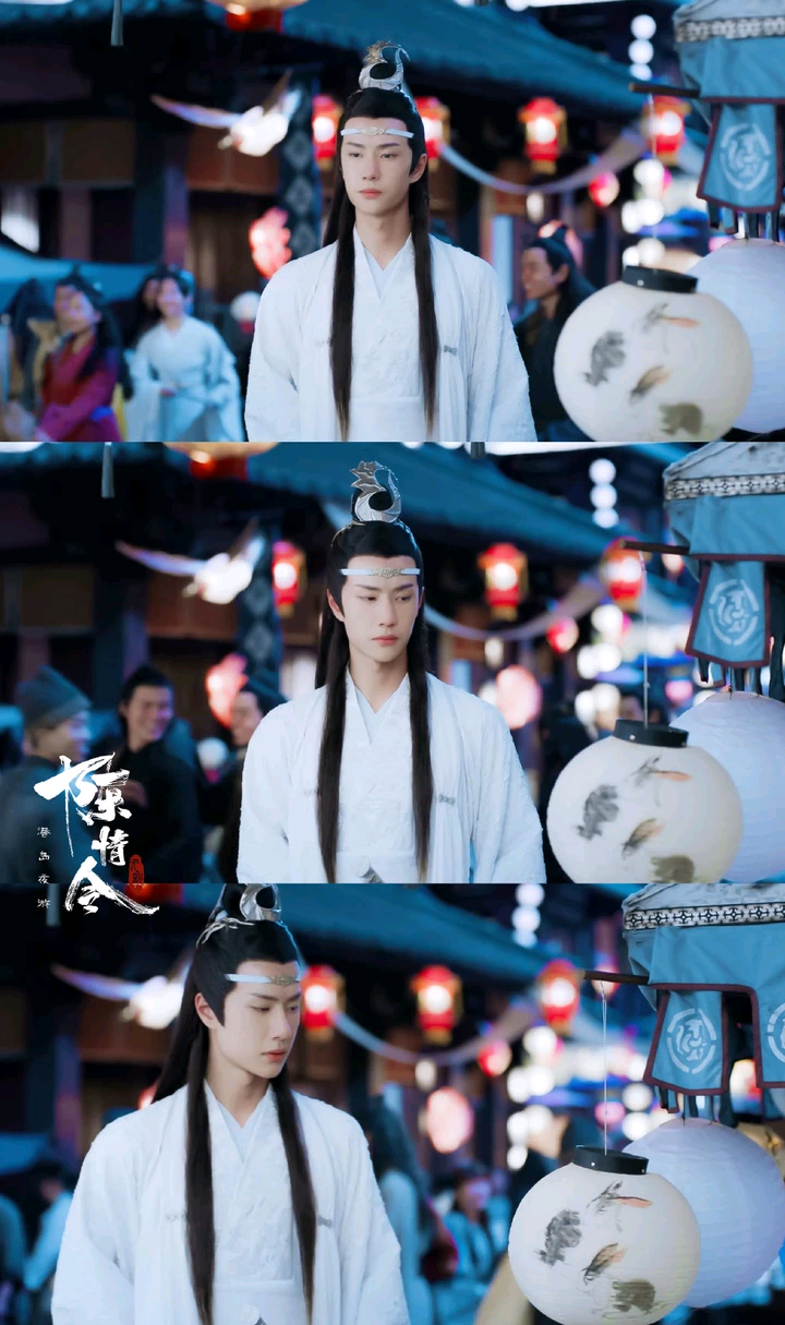 发冠不一样了,这个比较高端。而且温柔了许多,因为演到这魏婴回来了两人都经历许多神情啥的也会变化。而且这时的蓝二很厉害基本是全书最厉害的了。剧里可能没讲很清楚