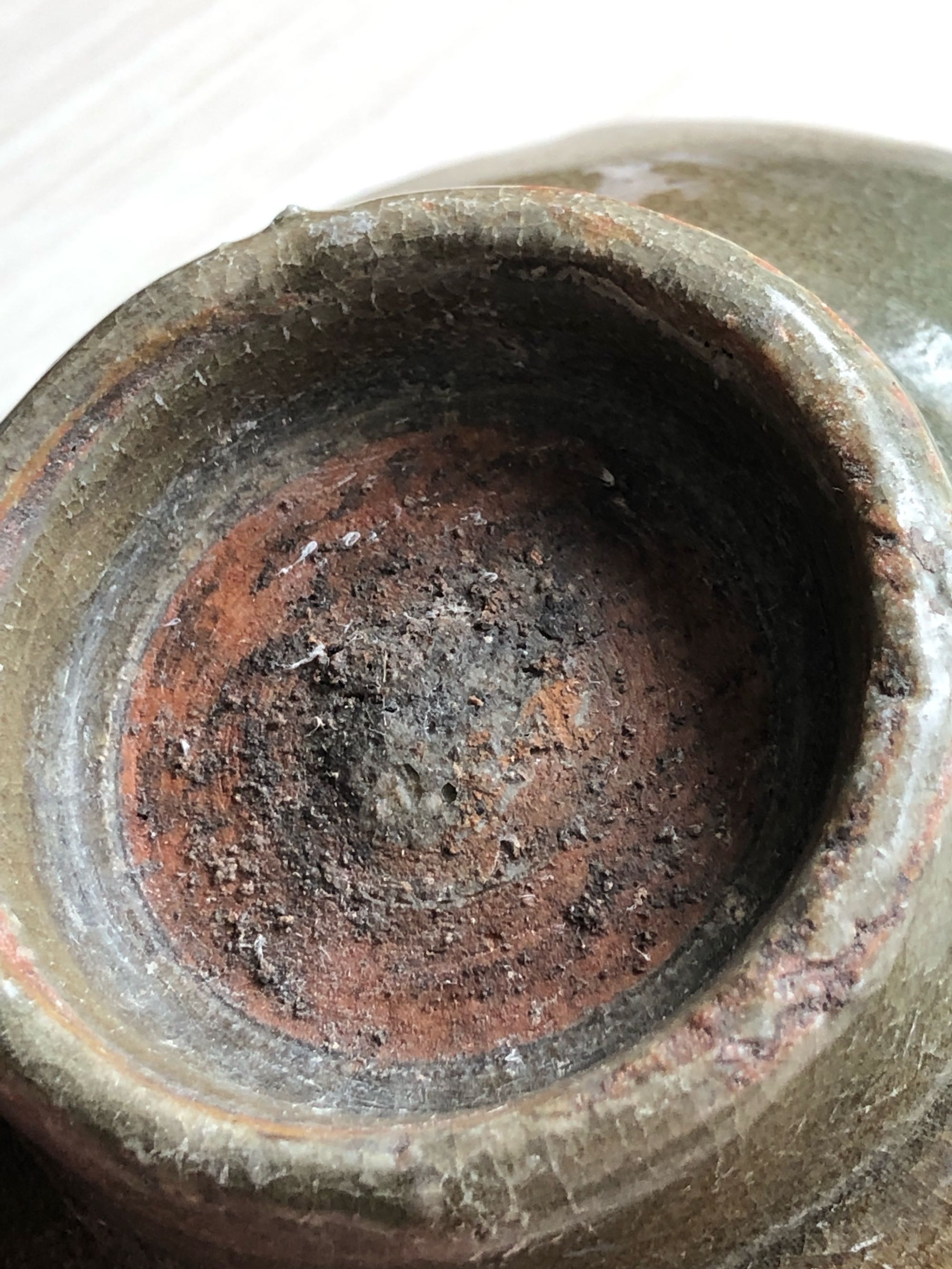 新的,胎子和底部火石红太润太涩,不干老,内部刻画不符合古代工艺,仿品无疑