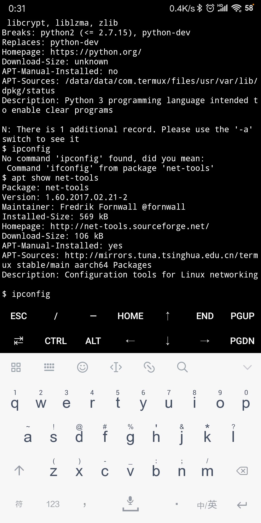 termux的查看本机ip的指令是ifconfig