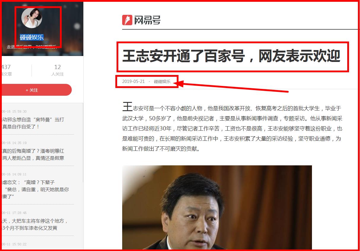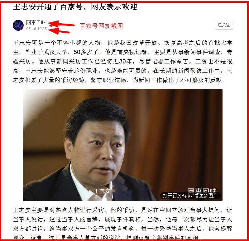 文章《王志安开通了百家号,网友表示欢迎》,原创作者:百家号:网事回味,发表于2019年5月18日19点53分。
