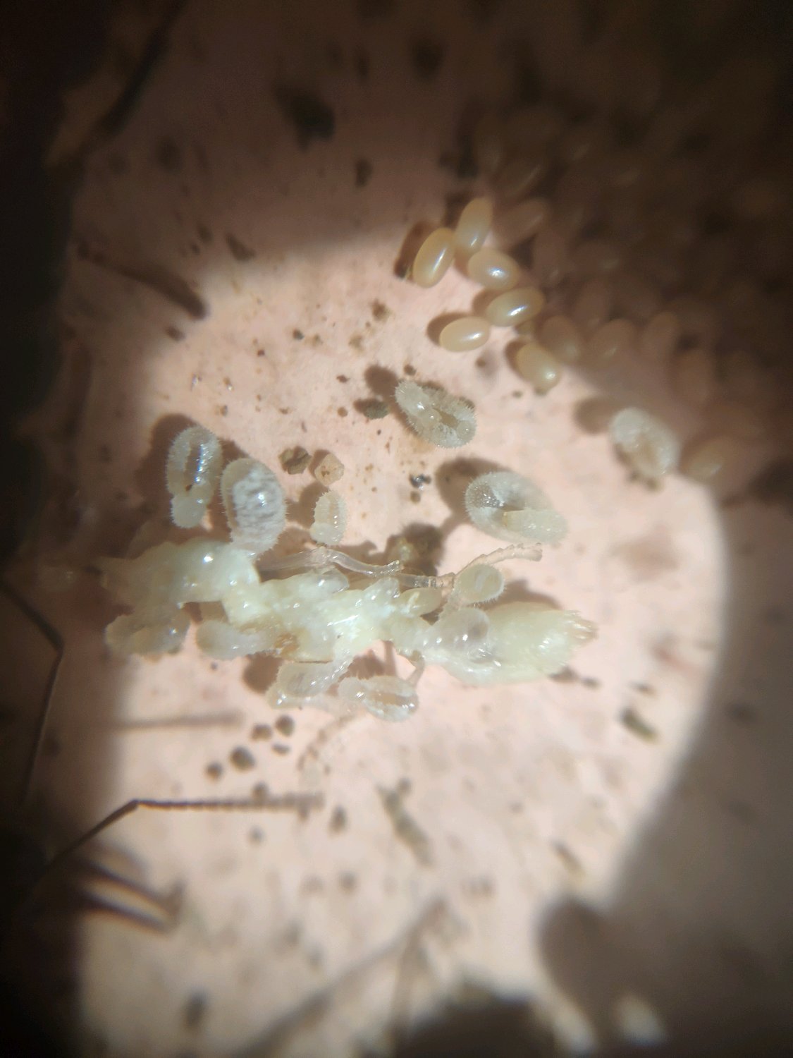 今天好奇小茧出的到底出的是蚊子还是工故意剥开一个看一下,是个工,后来吃饭之前就放回去了,回头一看。。。