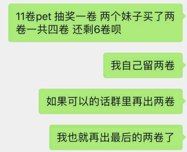 我刚刚看到一个吐槽的帖子。。。我感觉非常神奇???抢十几卷的网红还没到货就绑高额出难道不是一直被各种吐槽吗??别跟我说啥你喜欢啥的。你喜欢还没到手就绑出??收藏十几卷也是醉了。更迷惑的是在贴吧本来这种问题应该是各种吐槽的。结果就因为那个妹子说抽一个人送放课告白pet底下就一堆摸摸抱抱安慰的。。。还可以更扯一点吗??觉得没啥问题的那请你想想当你抢不到你喜欢的白月光,去买别人还没到手就绑高价出的。