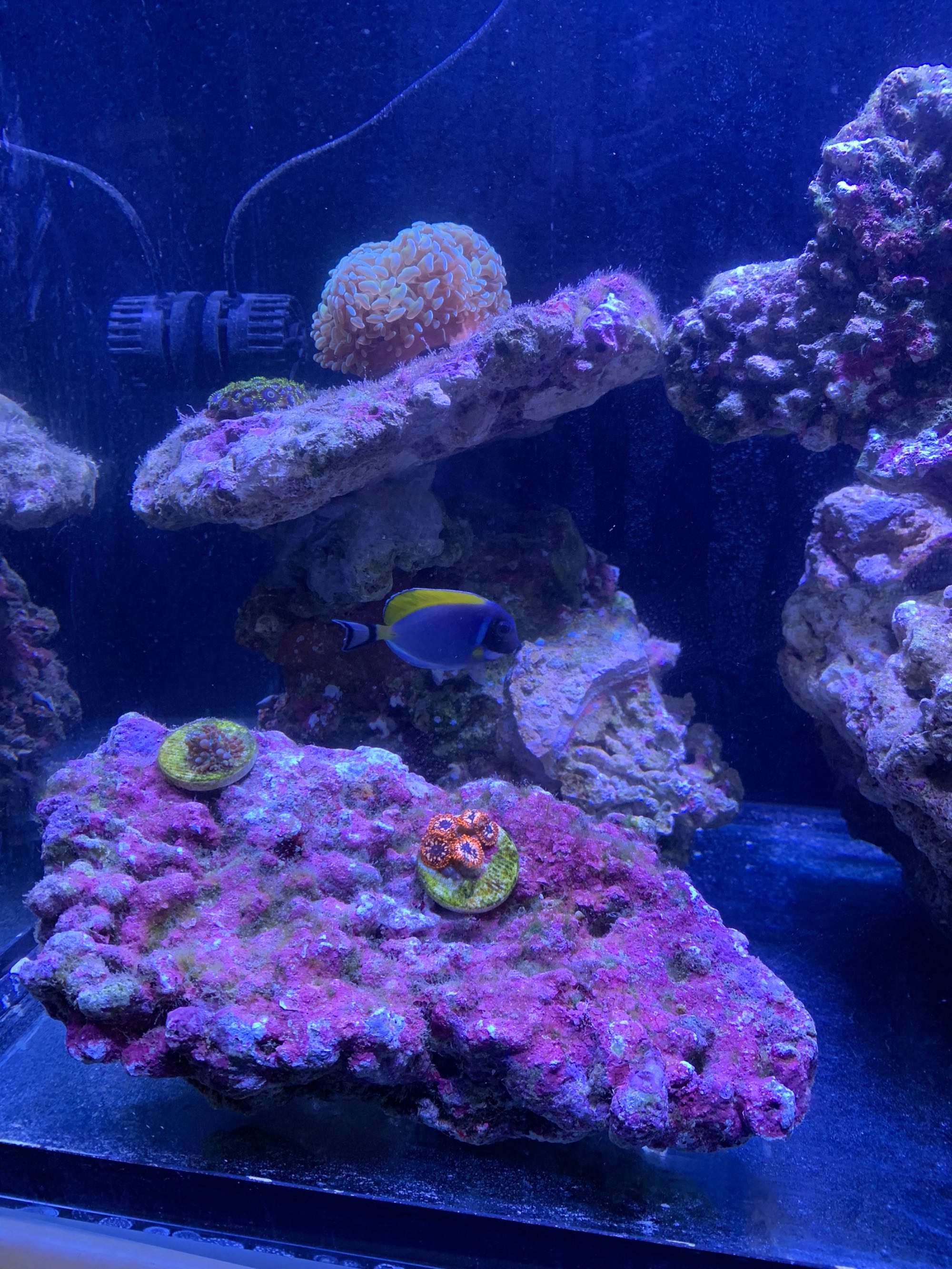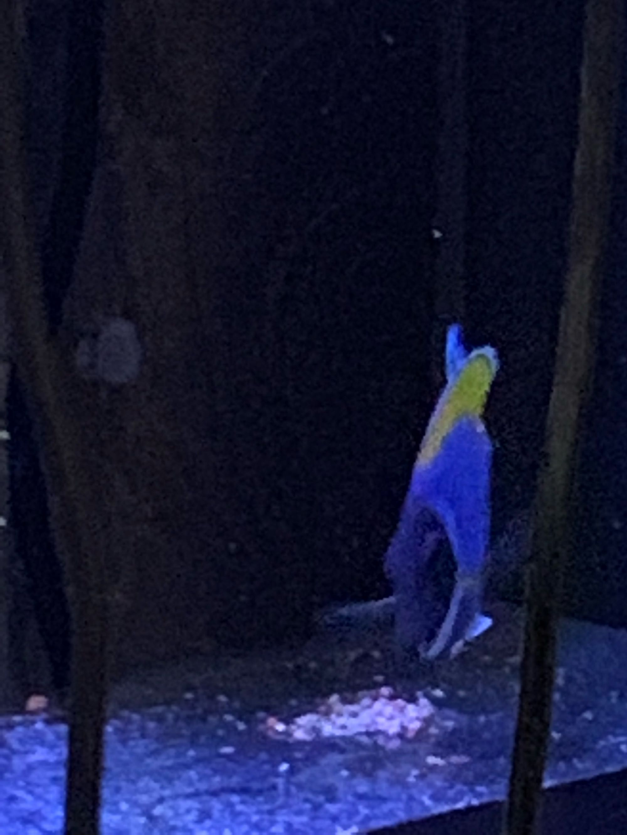 你买的是开口颗粒的,说明健康度不低,进缸有啄石头,本来情况还是可以的,一般新粉蓝进缸,还没适应新环境新水质,前2天肯定是处于或多或少紧张的防御状态,下缸后的几天内应该禁止折腾鱼缸的任何东西,尤其是晚上关灯后