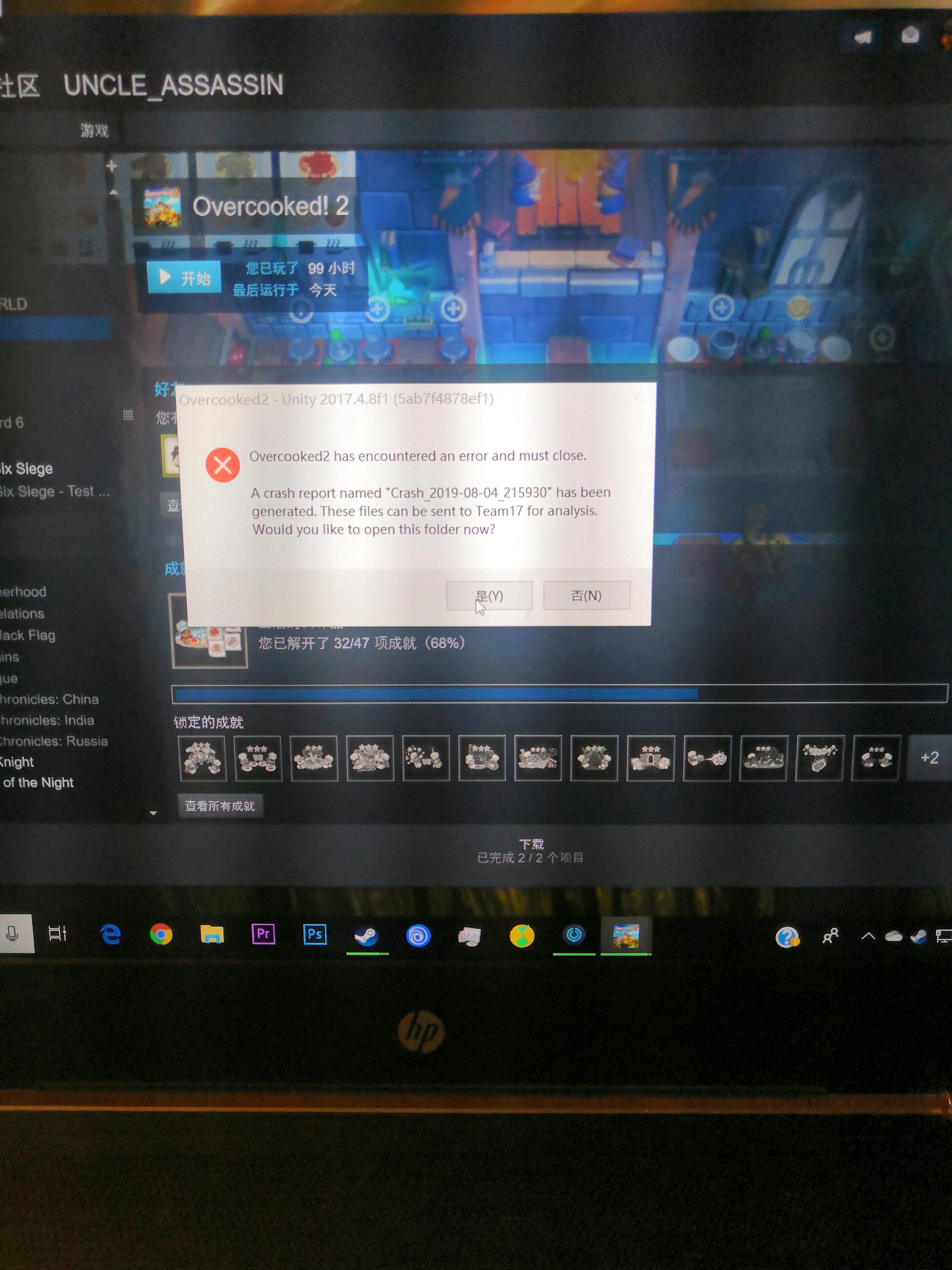大概打两把会出现这个,然后游戏卡住,任务管理器也粗不来,只有注销才好
