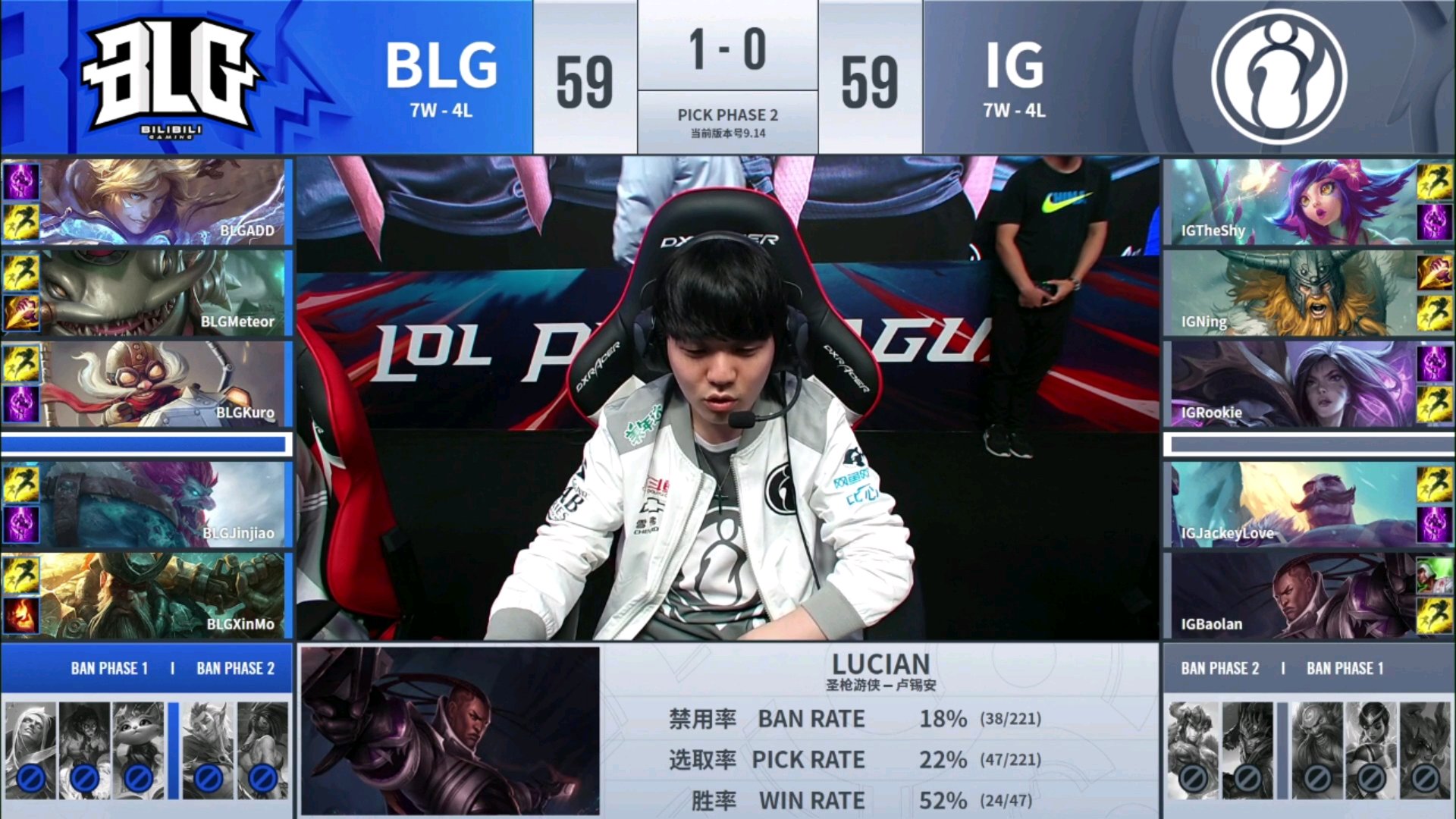首先可以判断IG是想打第二局的模式的,前两手不变,辅助不变。
