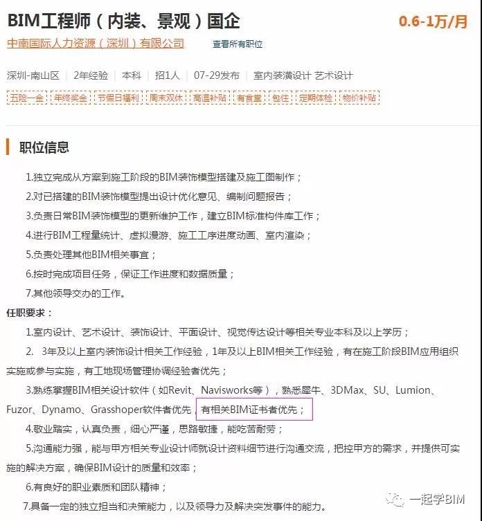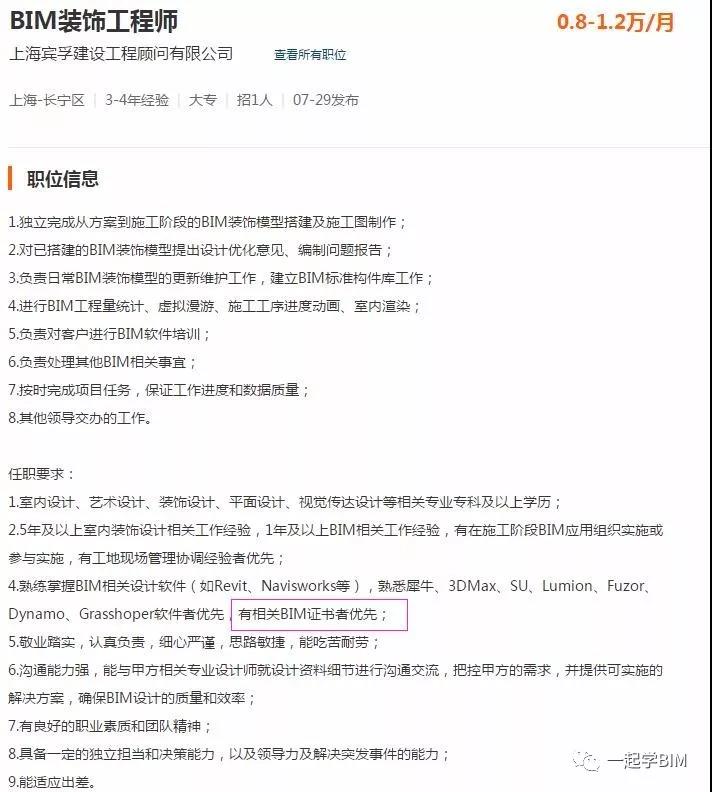 在这些招聘企业中,均将拥有BIM证书作为优先招聘录用的必备条件。可见企业对于BIM这项技能的重视程度非常之高!