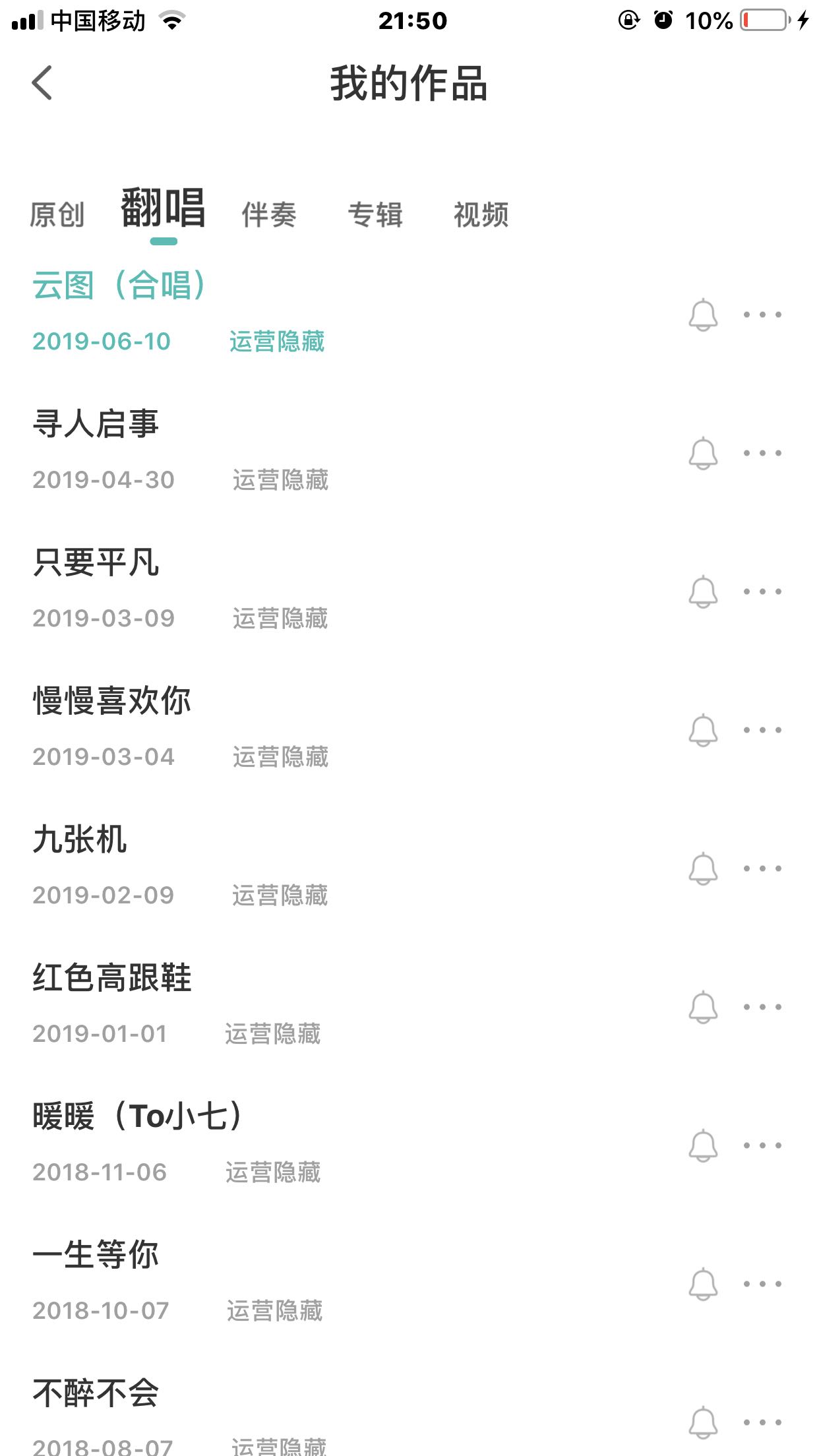 歌曲被运营隐藏,老天爷,我八十多首歌,全给藏了,剩下三四首,我就不知道我哪首歌有敏感词了。?前段时间也隐藏过几首,有一首我自己唱的非得说我弄的原唱的。那歌我删了,现在又搞这个!!别太过分了!