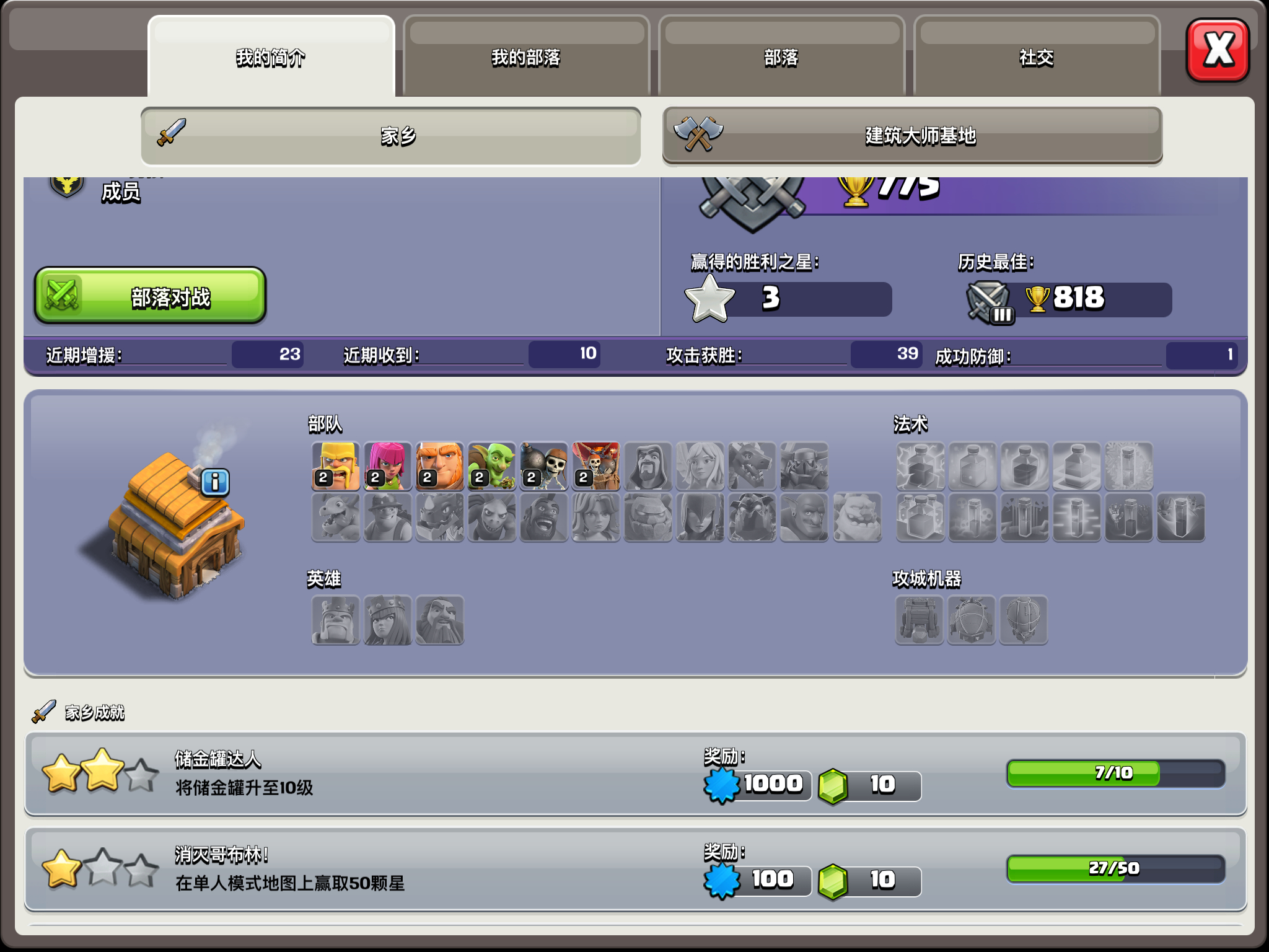 部落城堡2级,对面那人的空气炮被左边法师塔与火箭保护。。。。。