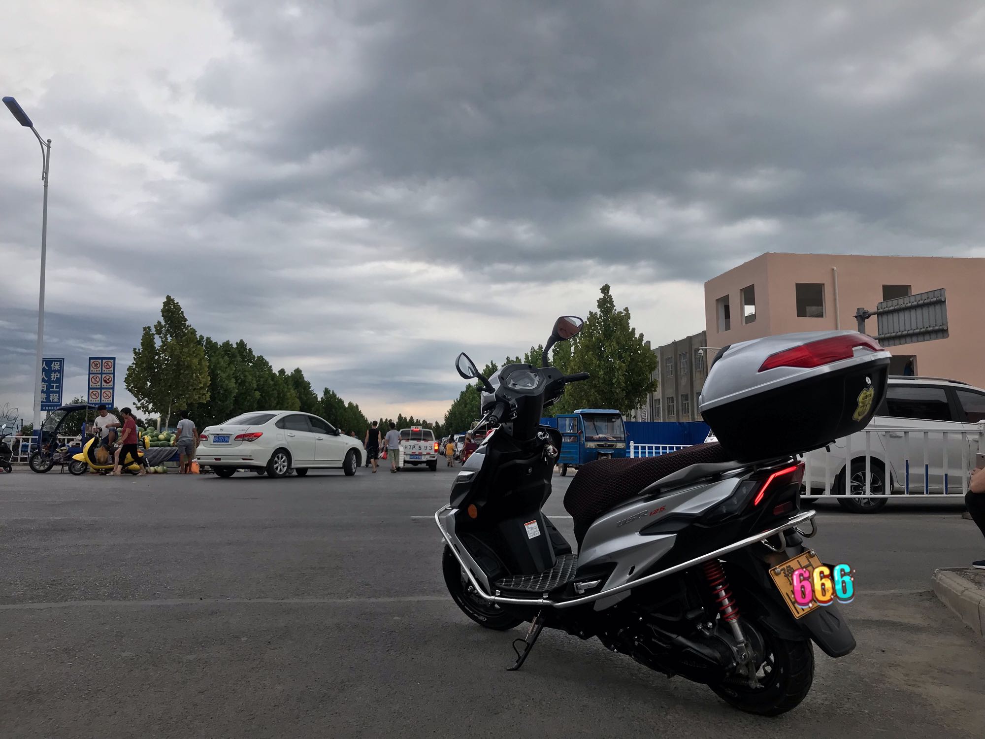usr125加装前置储物袋,以后可以放瓶水了,行驶证,驾驶本,纸巾零钱,都可以放进去,充电的话可以装个移动电源,脚垫是自己剪裁的用的绝缘垫挺厚实,清洗也方便而且还能防泼溅水。昨天骑行密云鸭子湖钓鱼,钓完鱼又去怀柔转了一圈,现在八百公里。很快就可以第二次保养了。