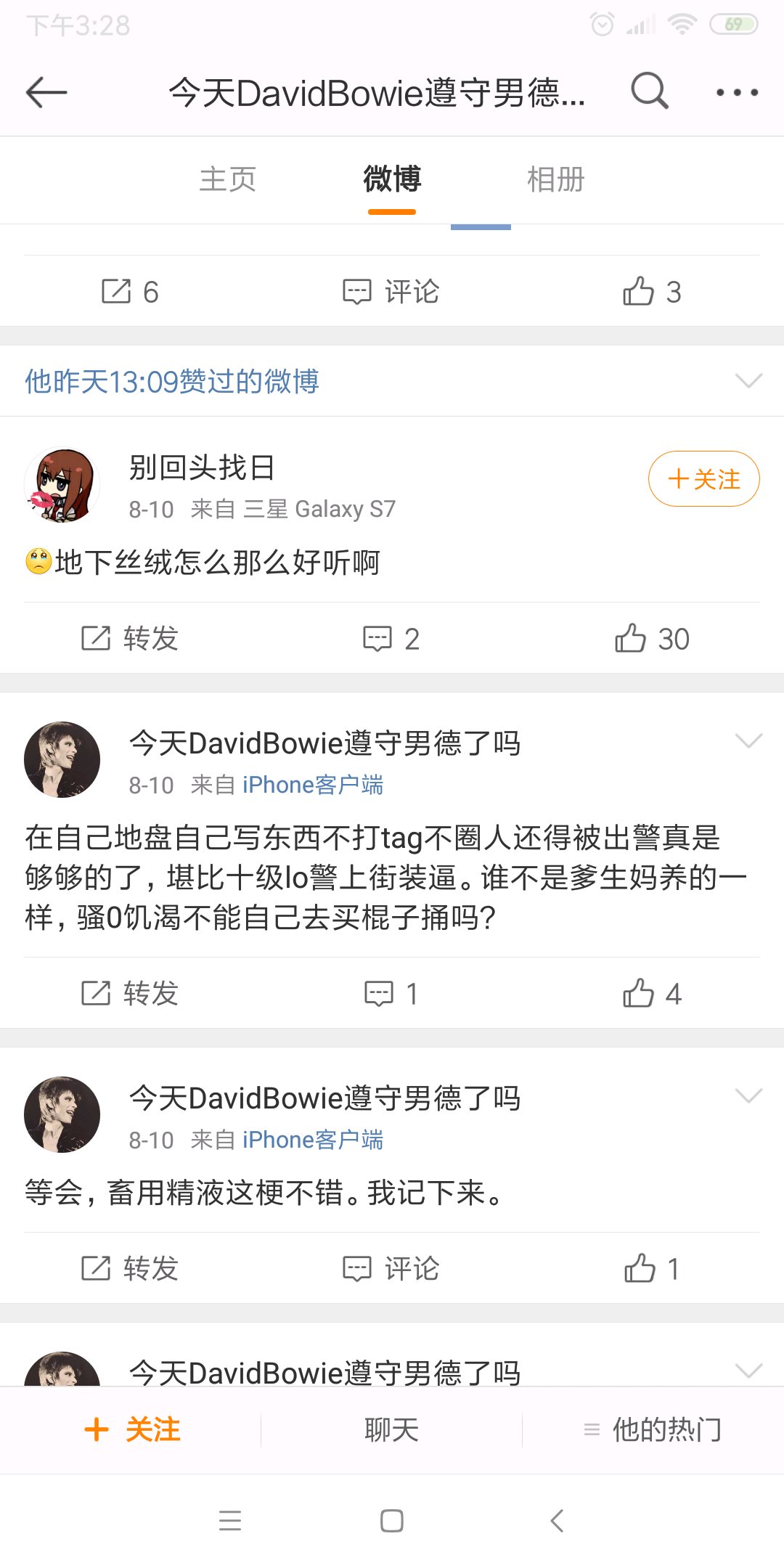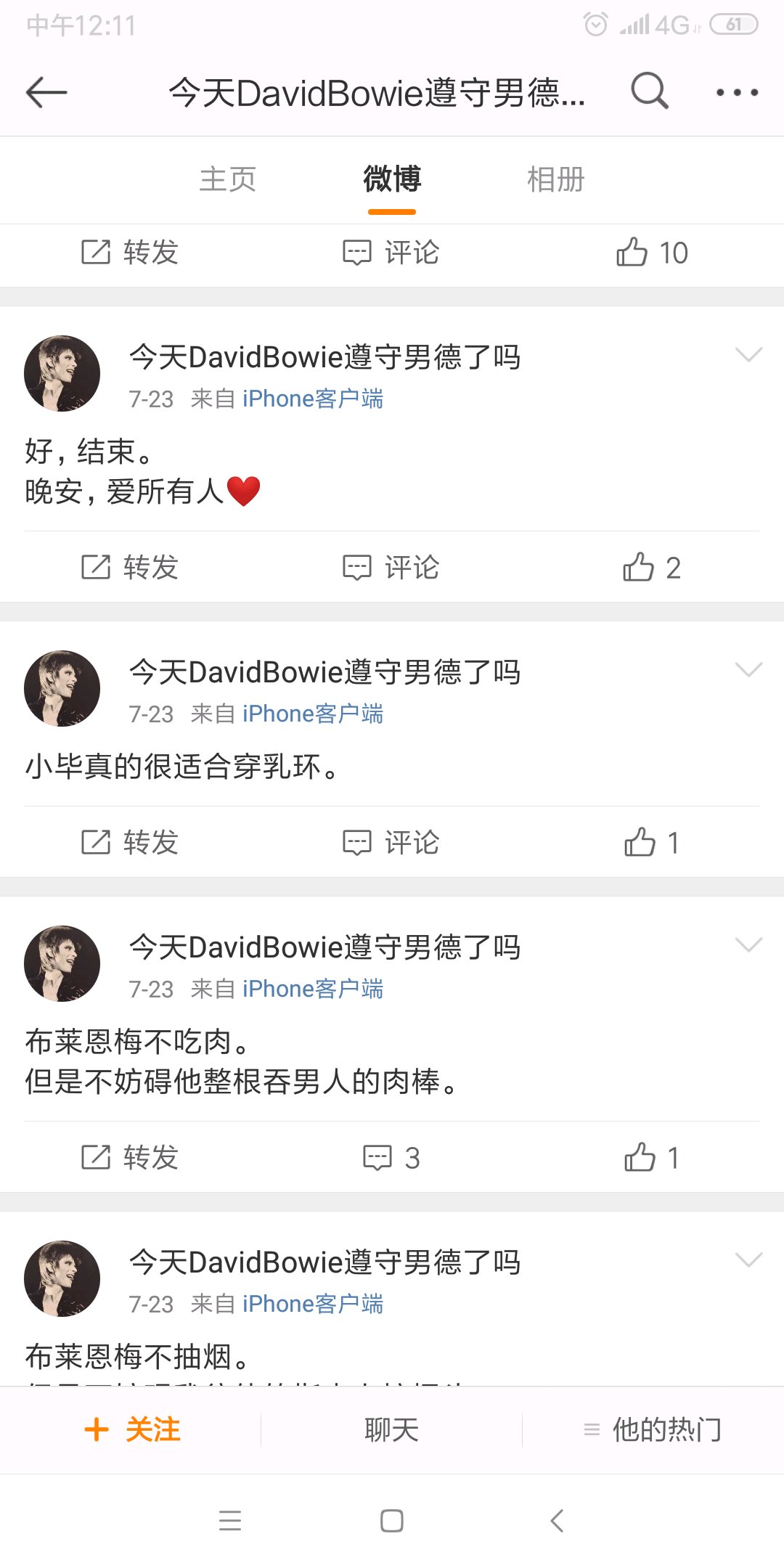 我不喜欢歧视人,可我觉得他不配评论,不配用大卫鲍伊的名字