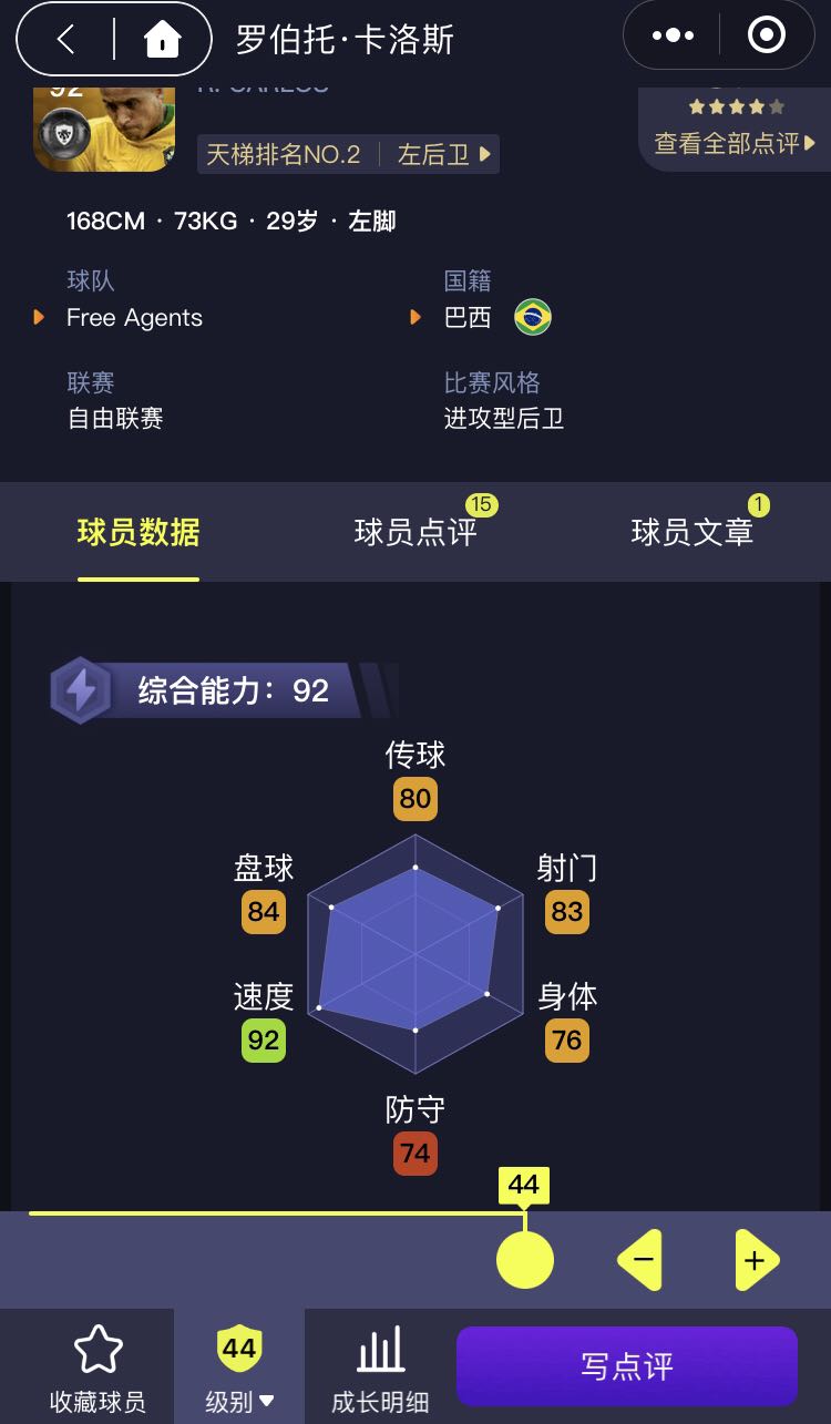 速度射门堪比中锋,传球媲美小贝,回追速度T1级别,就是防守稍差,所以妥妥T0级别