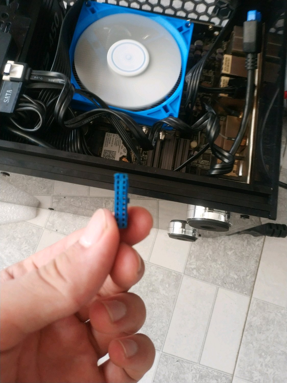 你买的二手主板?这是上家的前置usb3.0插头断在插槽里了