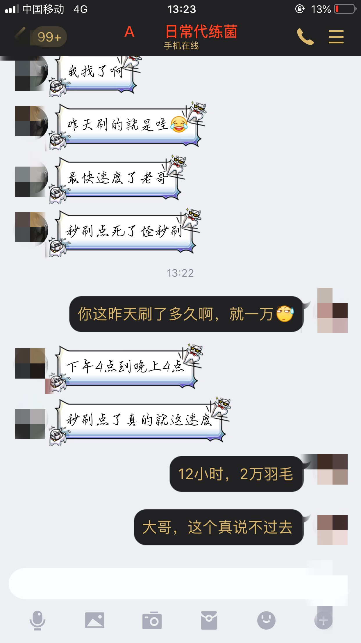 神他妈刷羽毛用老板自己号刷