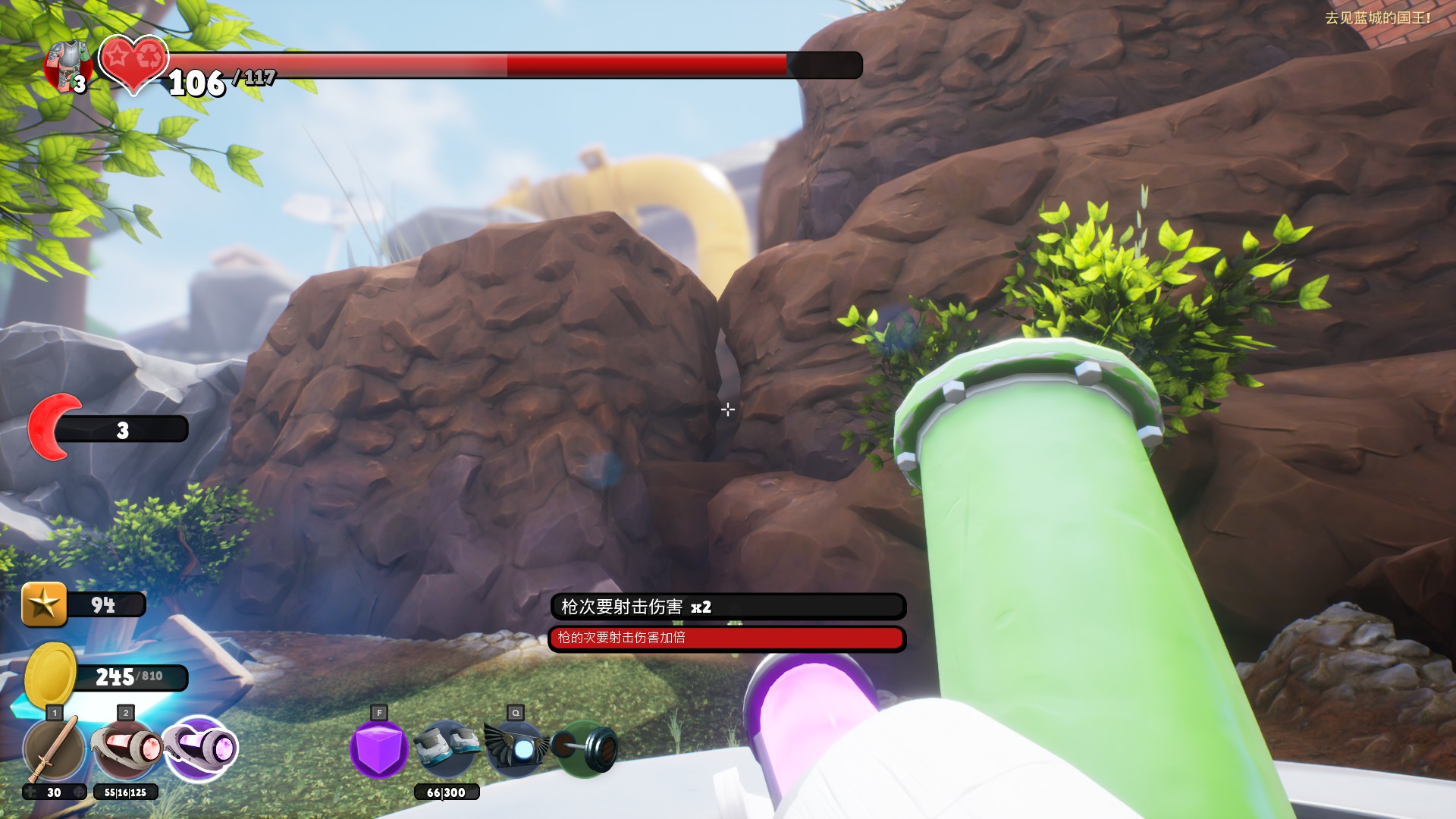 得到射线枪屋子对面的山缝里(我没有连线上不去)