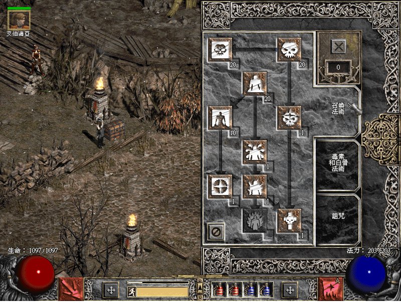 我已经地困难难度第三幕了…支配和骷髅点满了。老哥死灵等级高吗,能不能把技能树给我看看