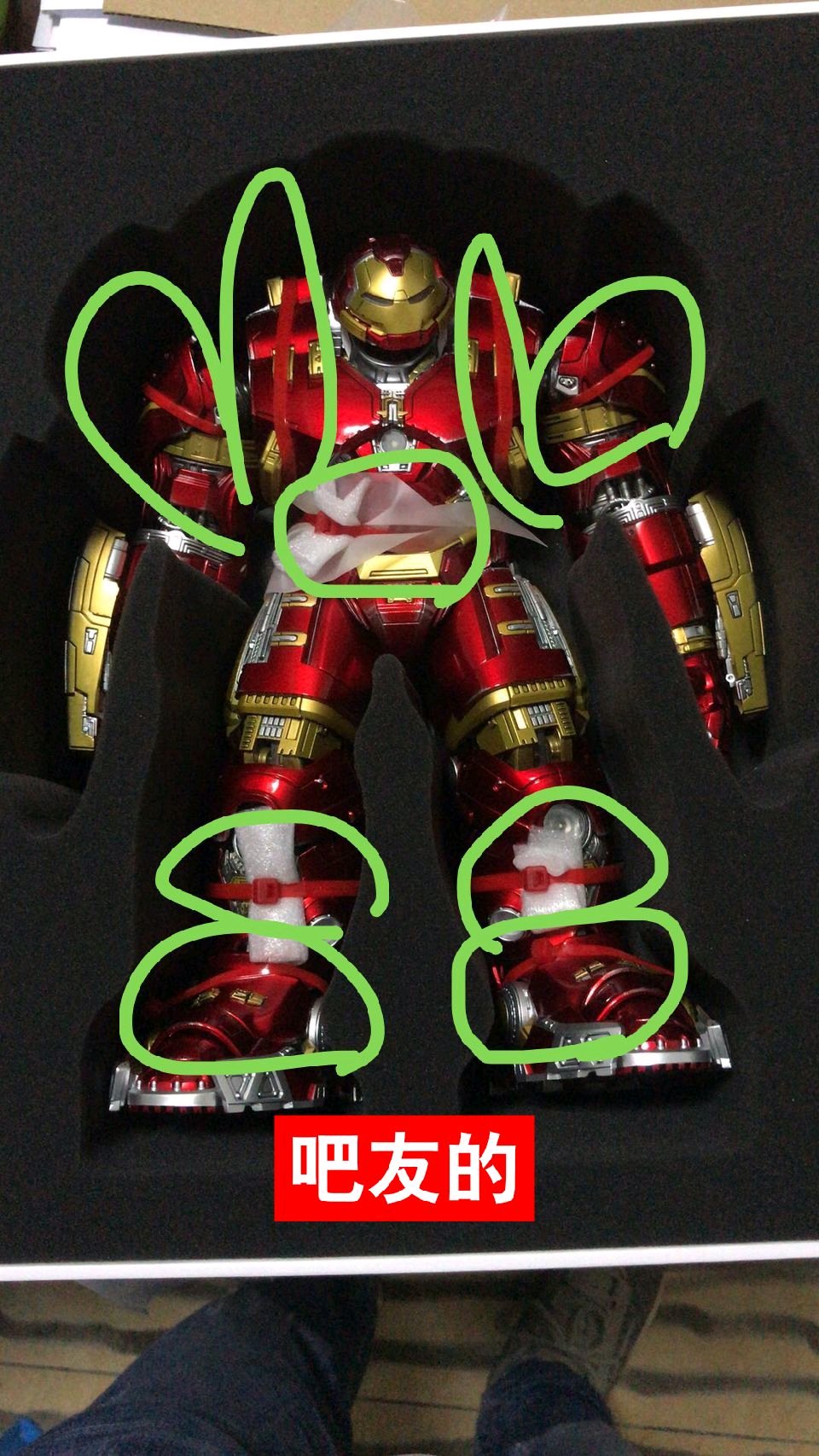 看看其他人买的,反浩克身上全是绑带,我的就只有腿部跟腰部有,这还厂家直发,直发残次品?