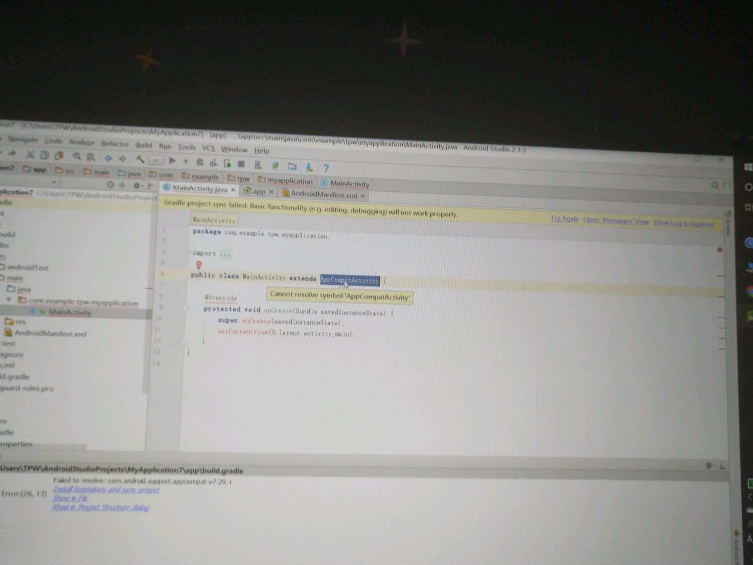 第二个问题,cannot resolve symbol appcompatActivity