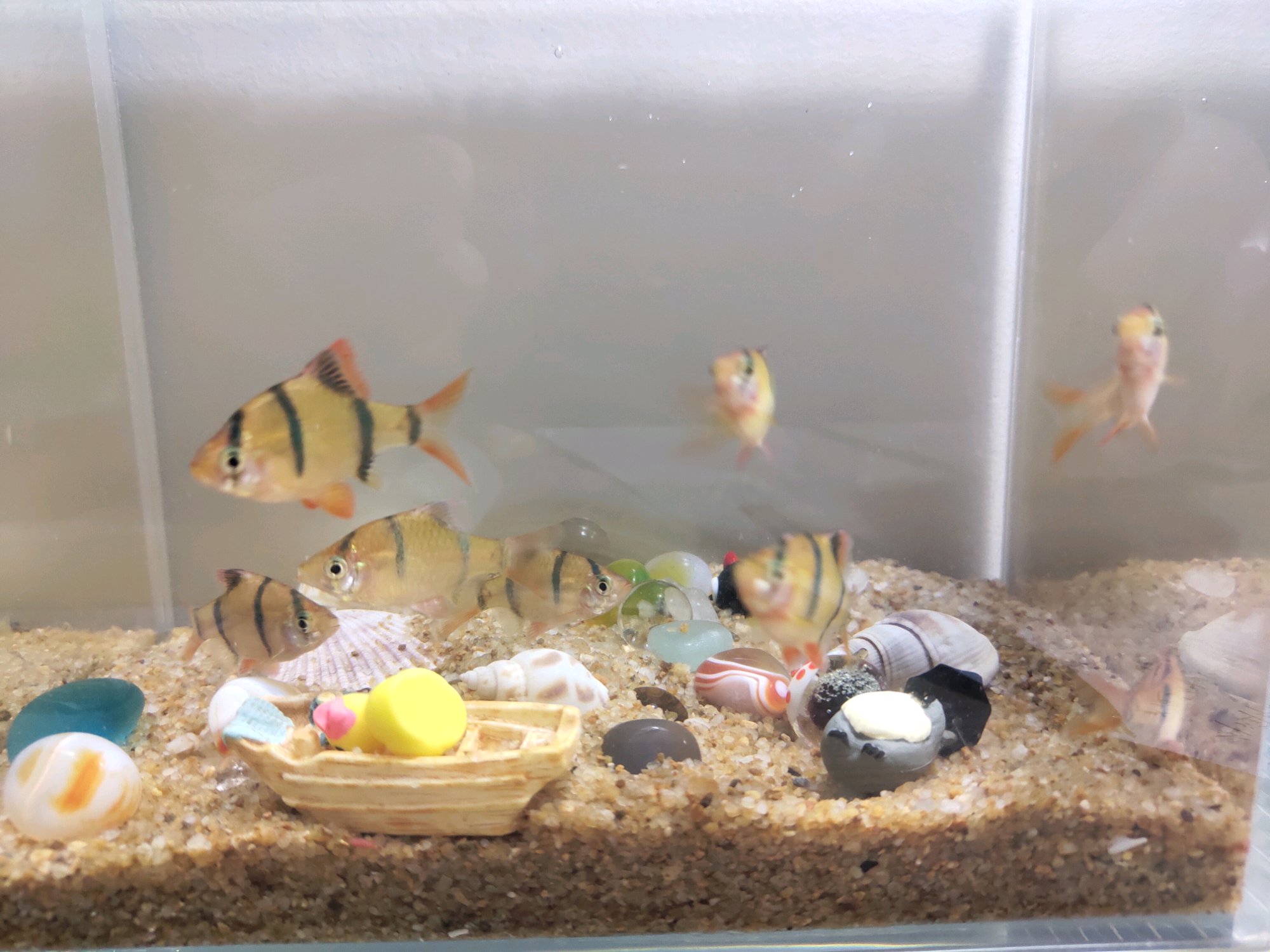 这鱼叫什么名字阿那天去水族馆买回来都忘记问名字了,就觉得很好看很配我的海沙打底,哈哈自己乱造的景18cm和22cm的缸