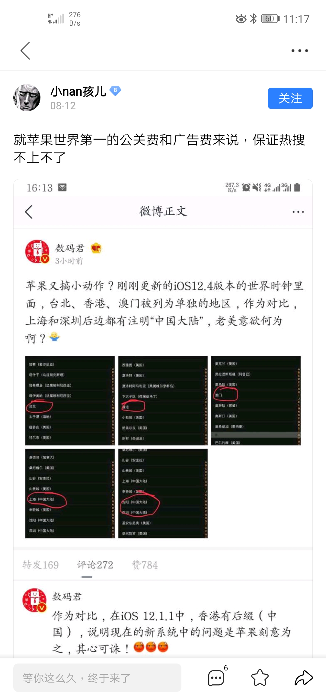 别光说输入法,去年的苹果发布会,把中国,台湾,香港并列,你们怎么看。美国他们自己的维尔京群岛却不忘加US
