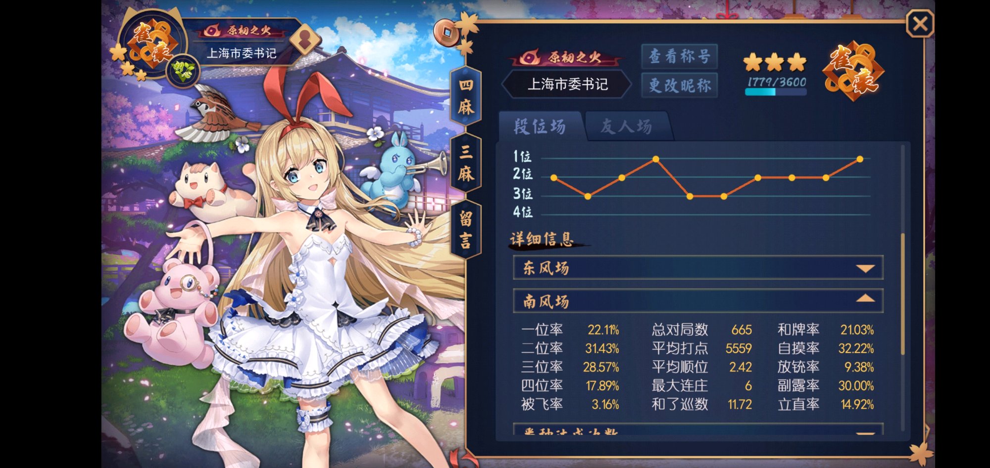 或许我该在金场把一位率拉到26+、铳率压到12再去打玉?牌效感觉还差一口气,兜牌判断不怎么样,也没有看手摸切的习惯