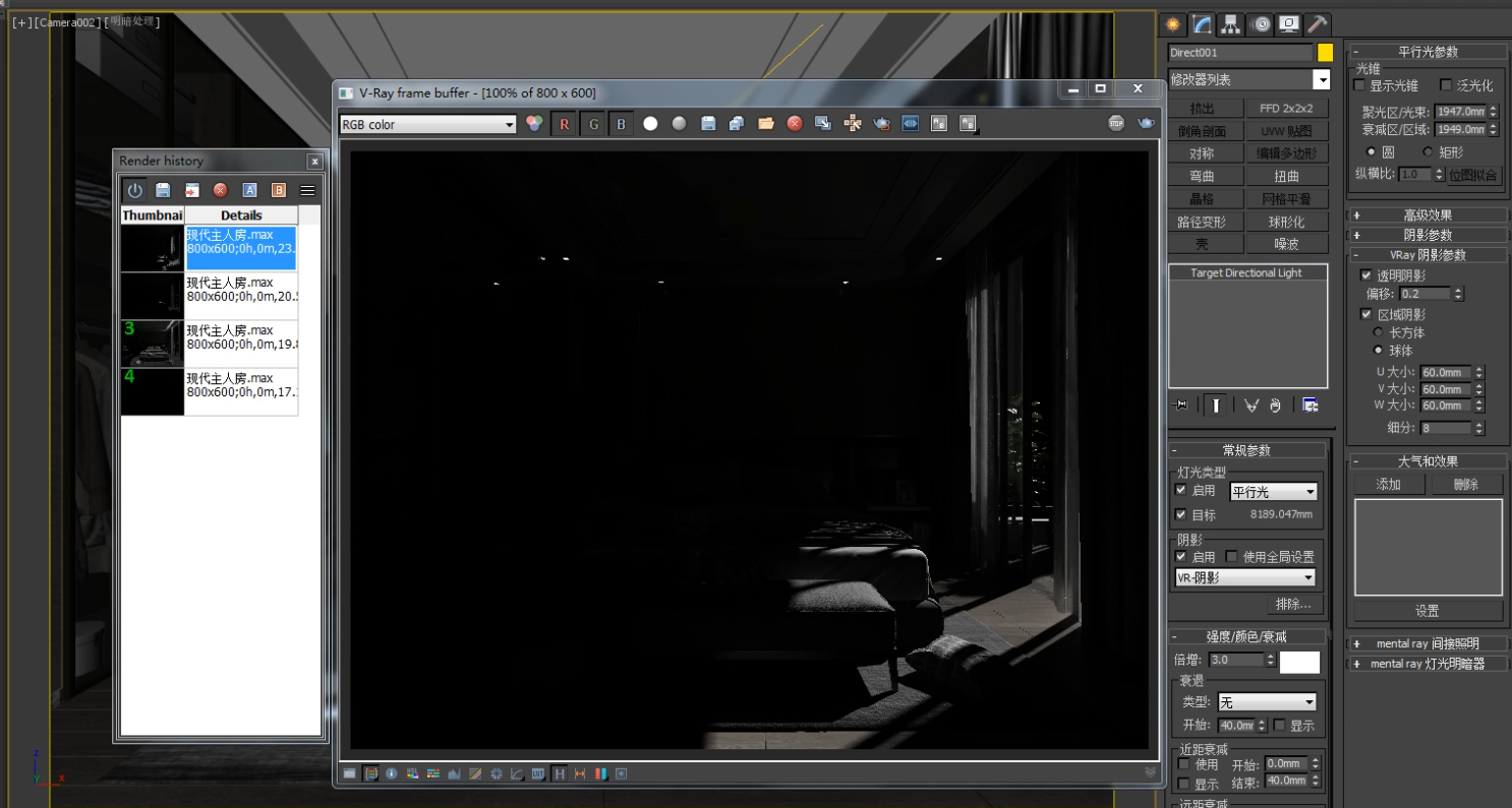 然后我们在来打一个VR灯光,也是一个平面光,就能明显感觉到光感比之前强烈。然后自己要注意调整好灯光角度