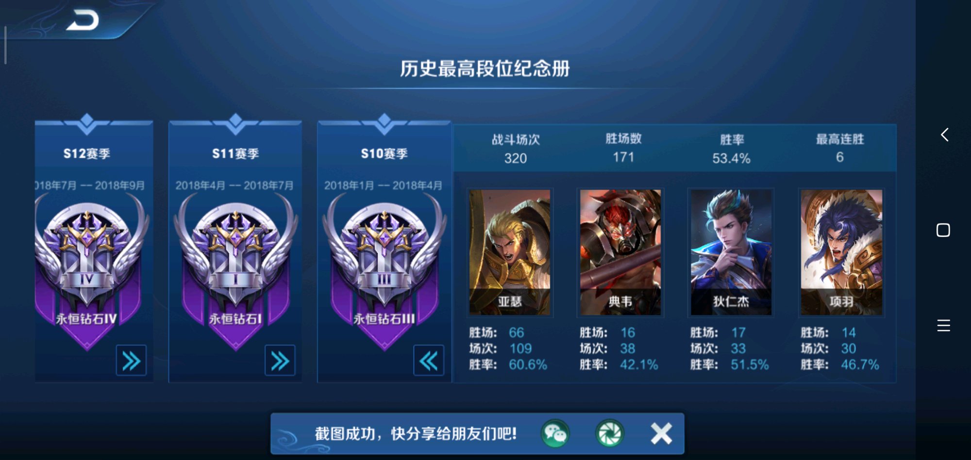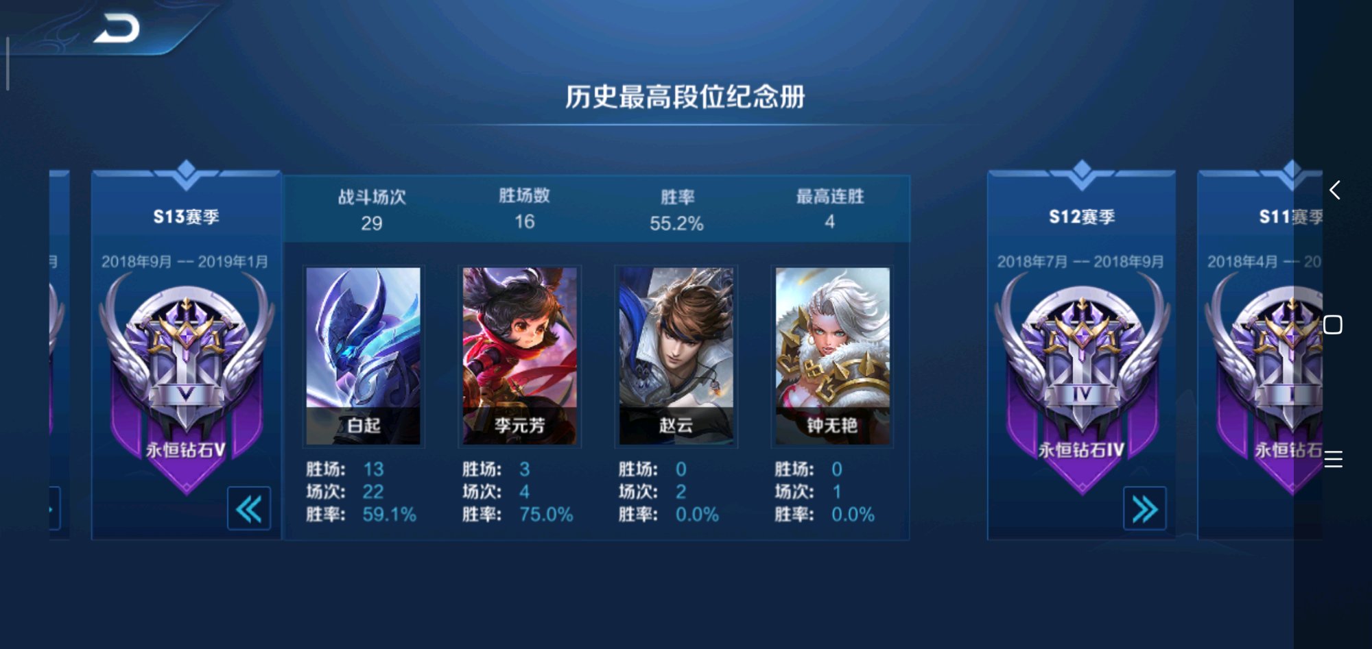 说说前几个赛季为什么是永恒钻石吧,其实,我早在第12赛季我就知道我可以上王者了,但是我没有上,因为我身边的朋友都没有上王者,我不想和他们的距离太远,那么后来为什么要上王者呢,因为我的朋友也上王者了,我要追上他的步伐。