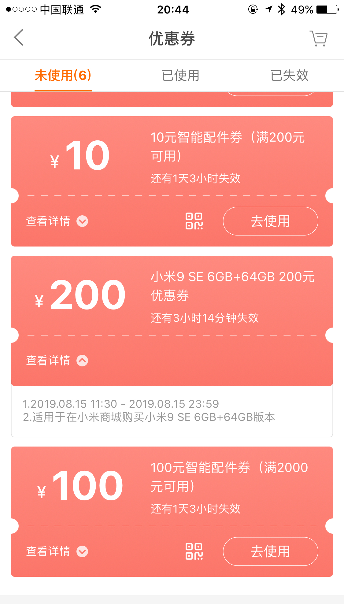 给我的券只能9se 而且只能是6+64G的