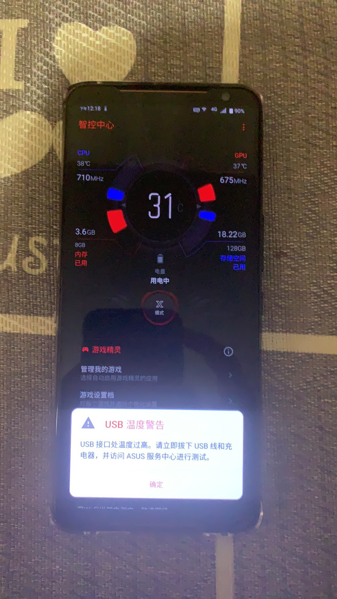 USB温度警告?手机在刷空间的时候突然弹出来个温度警告说是充电的地方温度异常让我马上拔掉充电器,我也没在充电啊。让我访问ASUS服务中心检测。现在重启了两次没有了。什么情况。