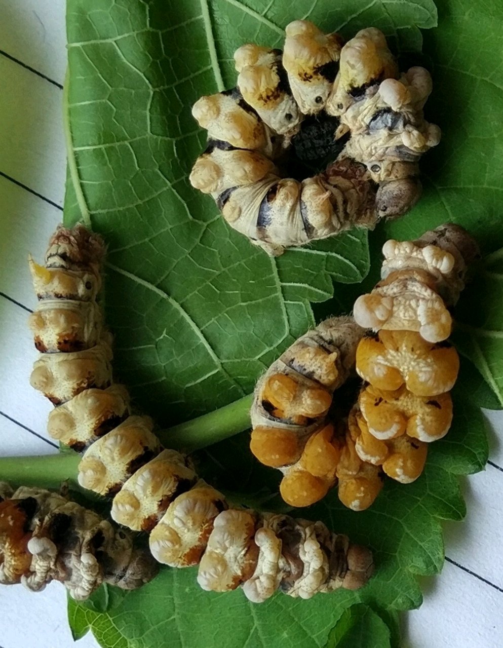 定向育种就是一公蛾,一母蛾,产生的后代,这叫一系,再来二系,三系,如荼班与班马产生的后代为第一代,叫一系,产生的后代再与野蚕产生的后代为二系,如再与红茧蛾产生的后代为三系,有了这三系就不会近亲了。龙角是红茶与红茧蚕的后代,现在看到的是4代了。如图一系龙角,奶头山龙角,二系龙图二。