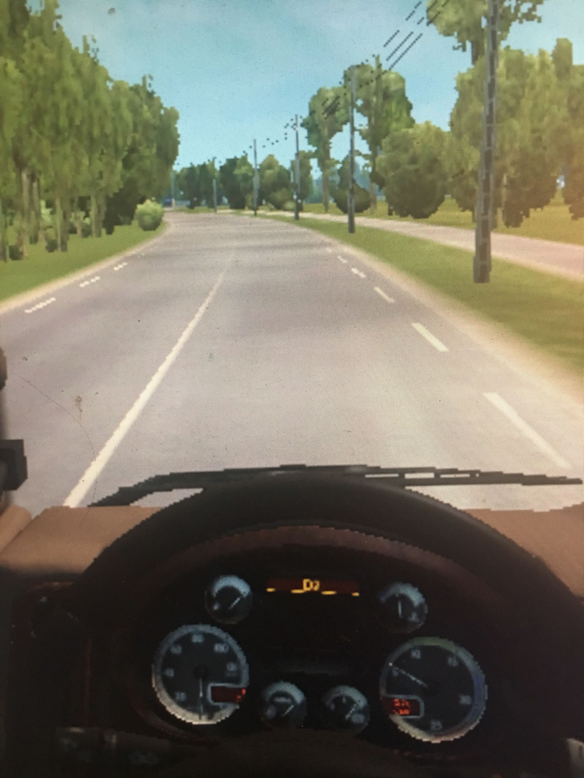 即将驶出奥马克镇,远处的草地上趴着个什么东西。