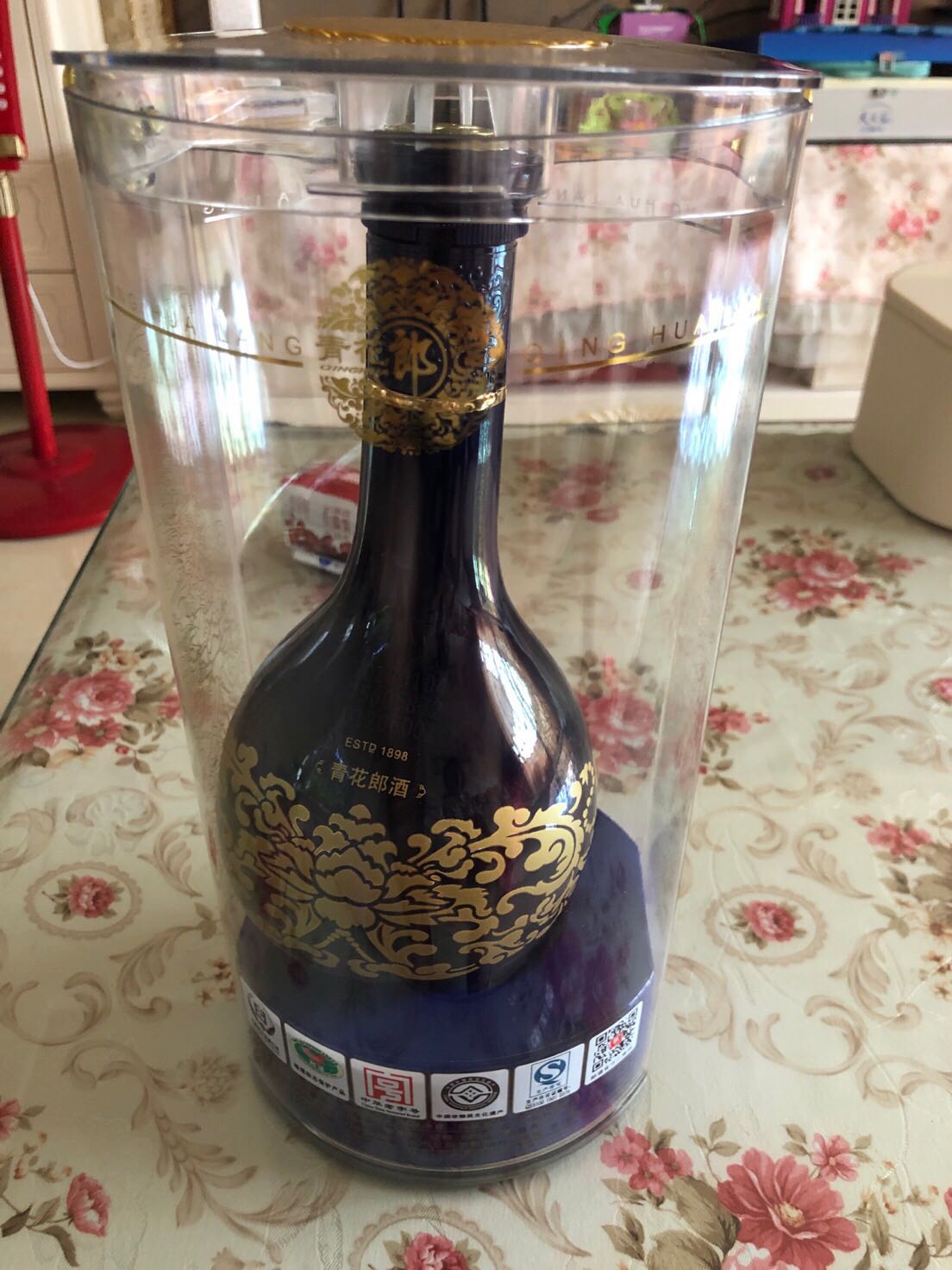 青花郎到了,瓶子在里面歪了,撕了3000云钻,让我又用孩子铅笔捅回去了