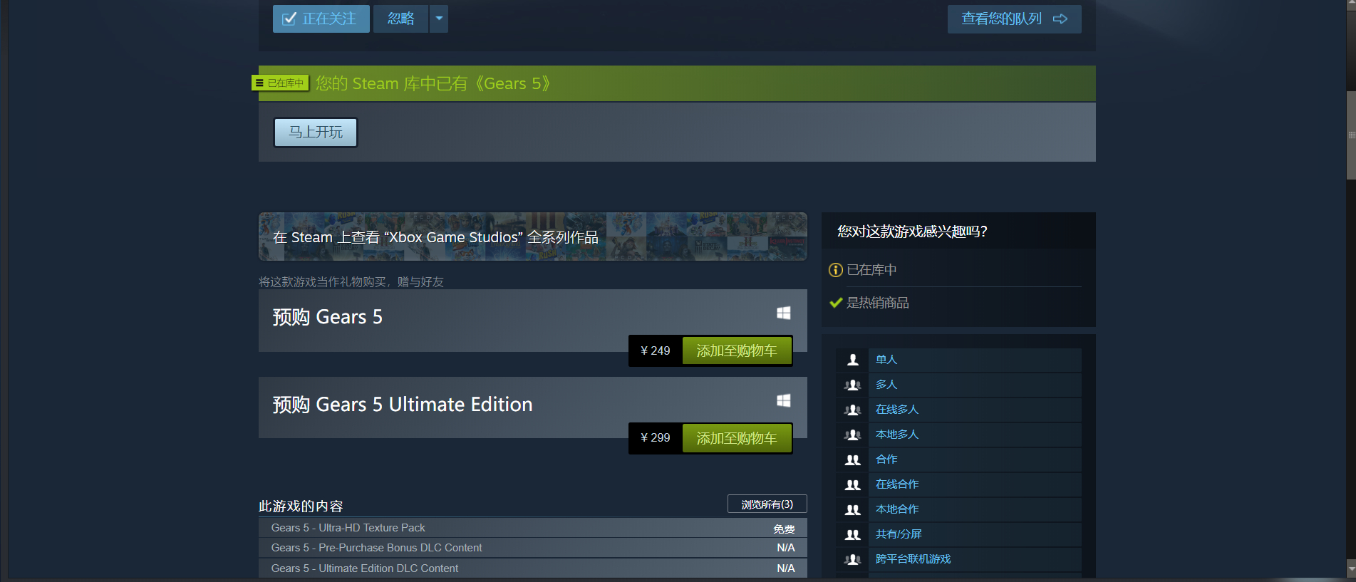 刚刚预购战争机器5,结果你猜怎么着,商店页面明明显示入库,结果库里一看却没有。
