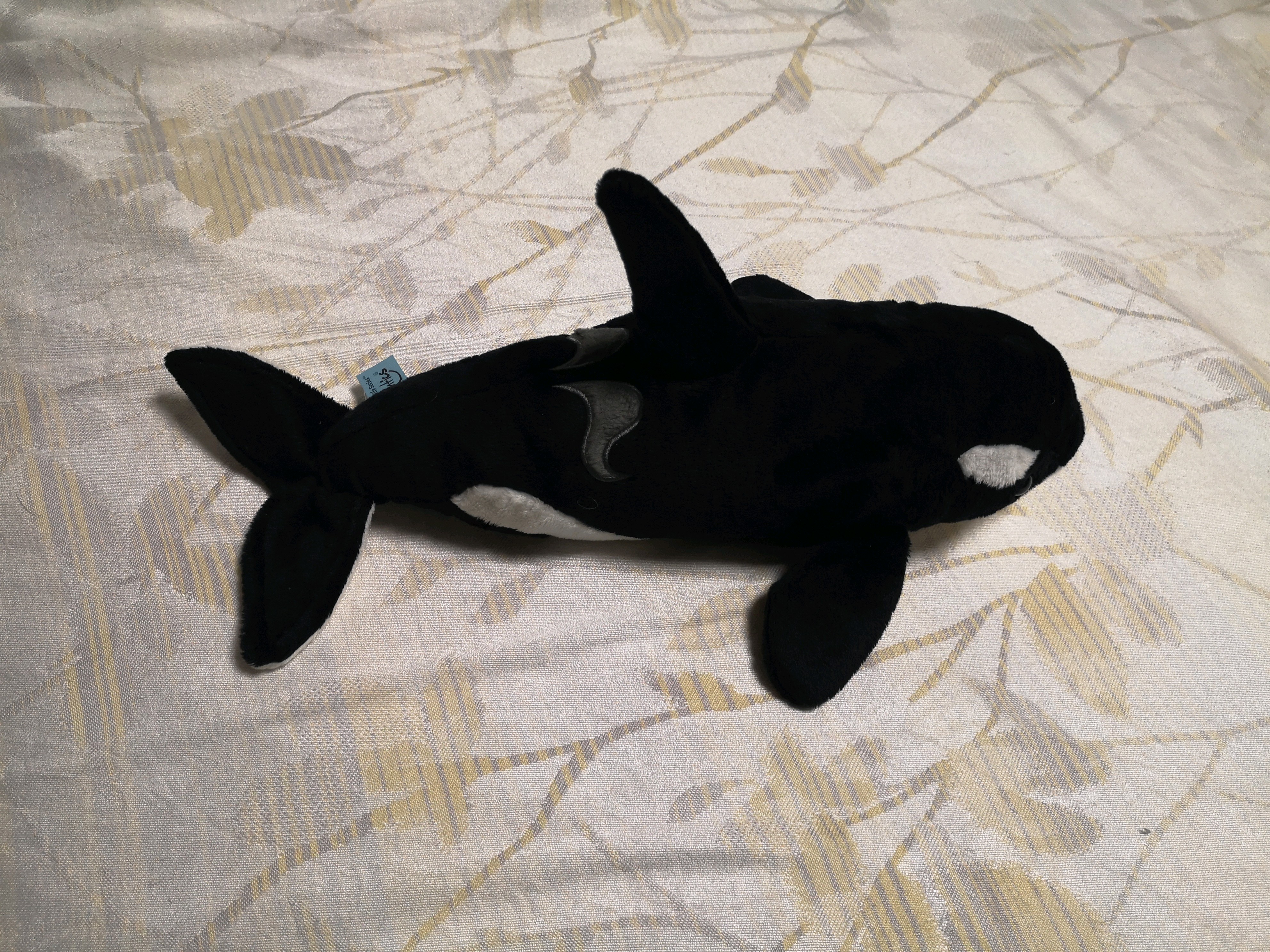 这个虎鲸玩具还内置了发声器,记录了虎鲸真实的叫声,听起来好诡异