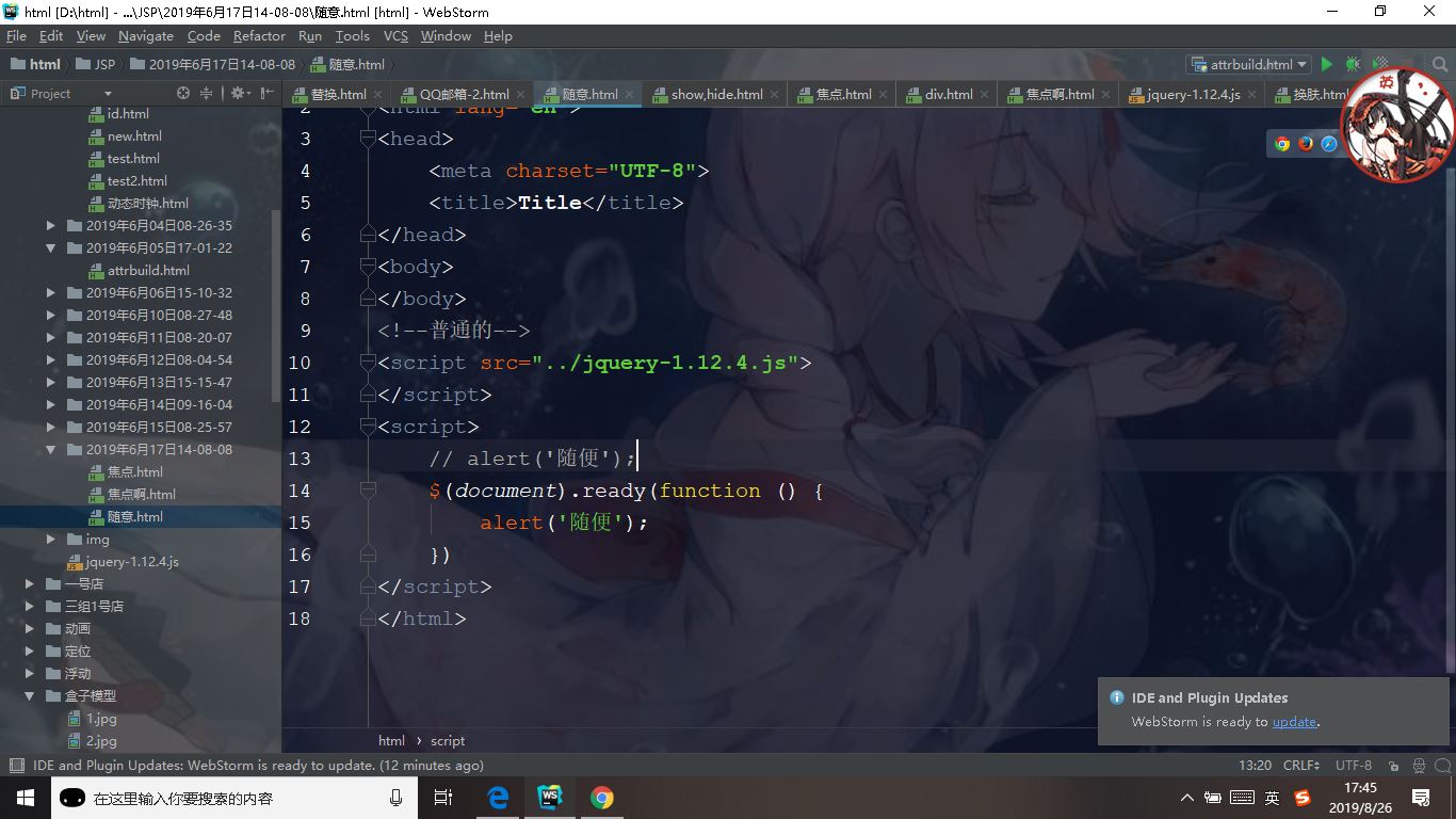 我今天晚上大量百度,下载这个下载那个,连最基本的jq的导入我都没弄明白😅