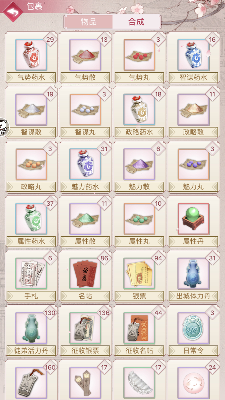 现在贵5,16个知己,只差和珅就满领袖技能了。5000元宝,在区内前三宫殿。徒弟历练位子全开,7个饭位8个花位。连续179天签到,6千万名声。