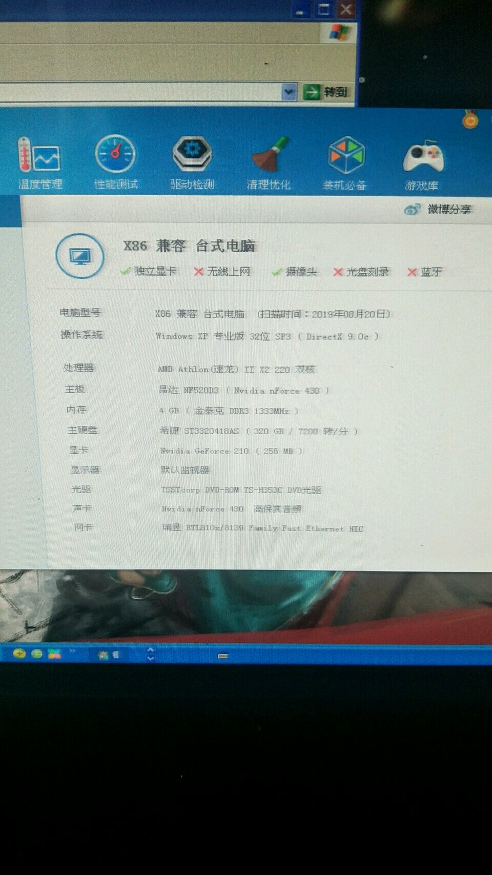 除了显卡外,其他都比我好吧,我的显卡也是几年前在修电脑那50块买的二手,他那里都是网吧收回来的破烂,键盘鼠标10块一套