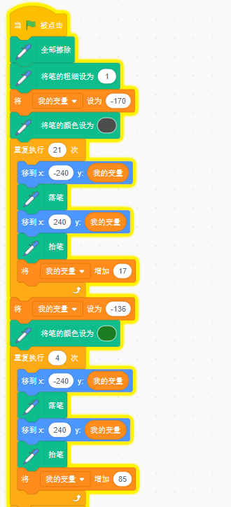 第一段代码用来画弦,先用暗色从下往上画21根弦。