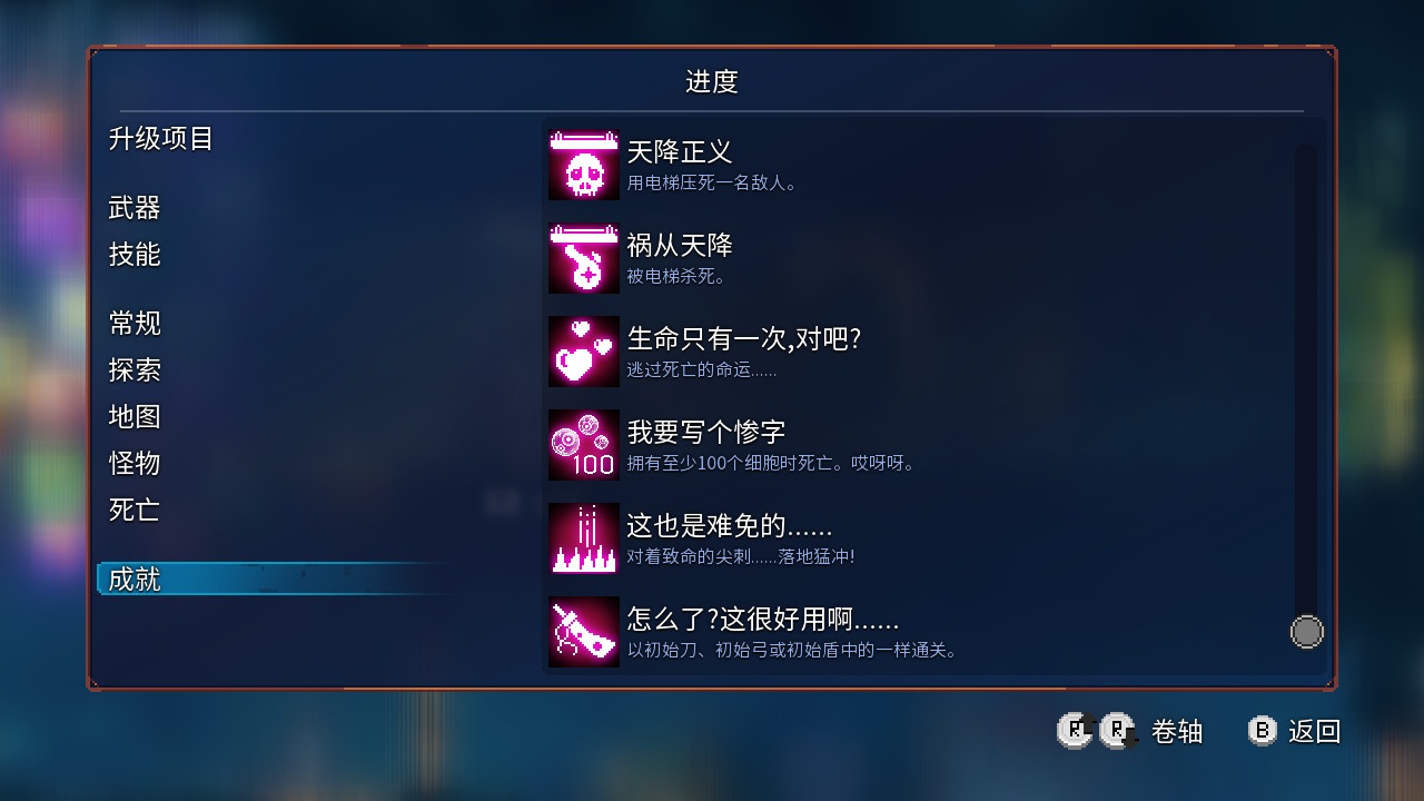 确实没有“在激活五个Boss起源细胞的难度下通关”这个成就,不过有打败搜藏家的成就。话说我希望加入无伤打败收藏家的成就